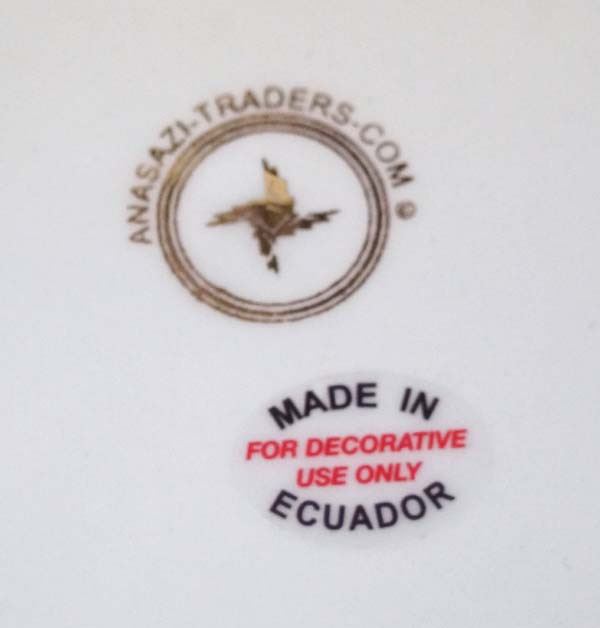 Anasazi-Traders Mimbres Parrot Ceramic Decorative Plate, measures 11''D, made in Ecuador, for decorative use only