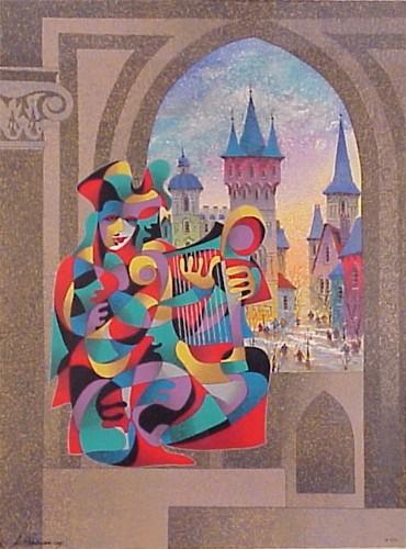 Anatal Krasnyansky (20th Century) Russian, THE LUTE PLAYER, screenprint, signed in pen artist’s...