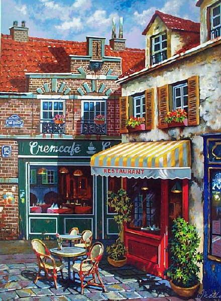 This contemporary Russian artist enjoys visiting the villages of France and Italy where he gets his inspiration, and which are so dear to his heart. 23x17 in. embellished serigraph on canvas, signed and numbered by the artist. Can be framed without glass. Domestic shipping $25. International depends upon location.