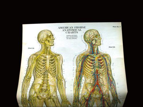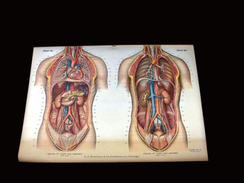 Anatomical Medical Educational Chart, made by A. J. Nystrom and Company 1918. Oak cabinet. In Excellent Condition. 51 X 24 inches closed.