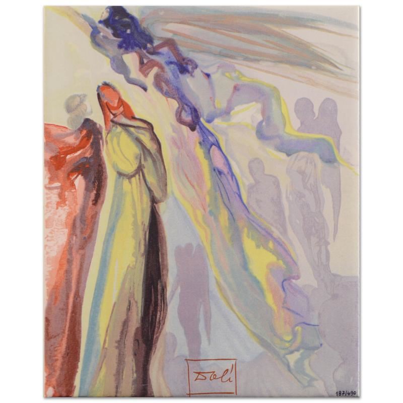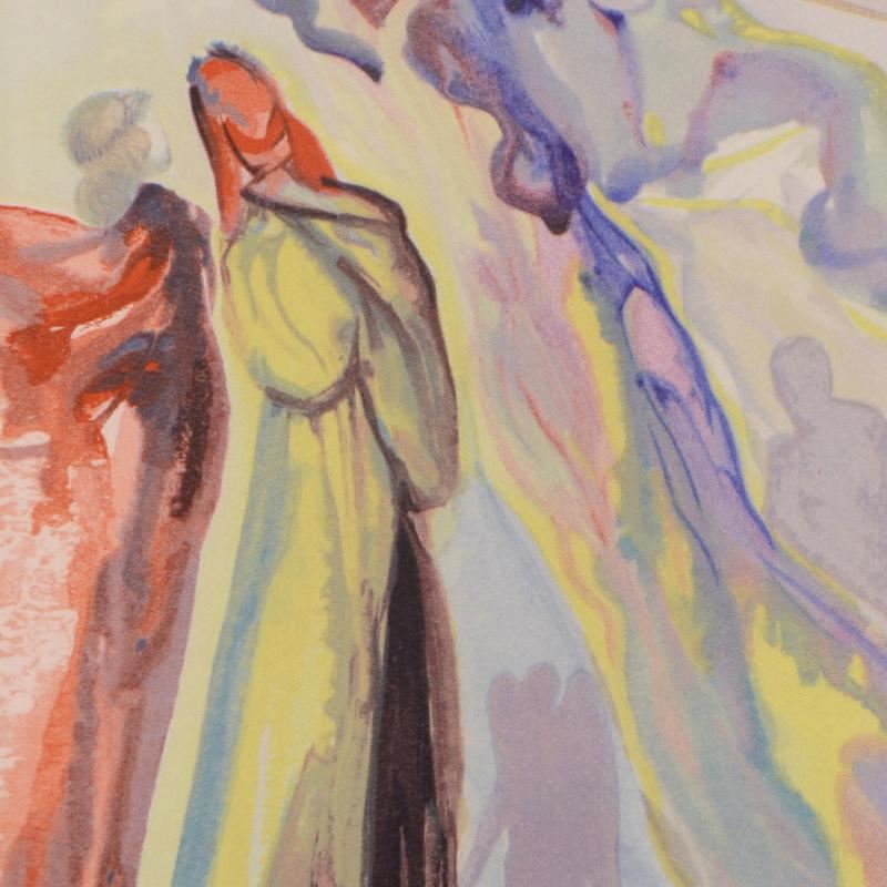 "Ancestor's Apparition" is a limited edition glazed ceramic tile from a SOLD OUT edition by Salvador Dali (1904-1989), numbered and plate signed! This piece illustrates Dali's interpretation of canto 16 of "Paradise", from the epic poem "The Divine Comedy". Measures approx. 8" x 10" (tile).