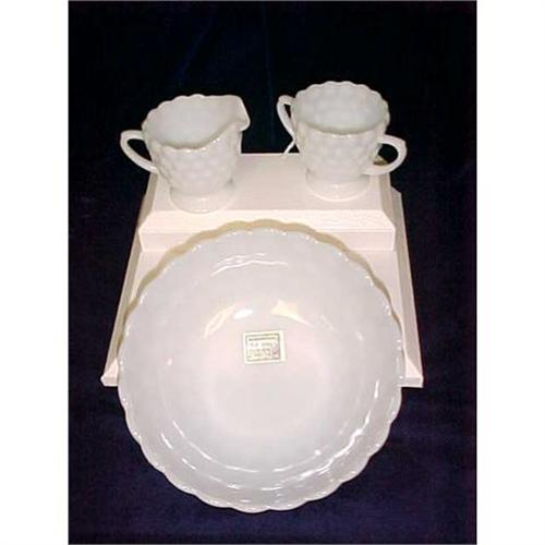<tr><td>Title:Anchor Hocking Bubble Milk Glass 3 Piece Set</td></tr>