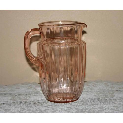 Produced by Anchor Hocking Glass Company this is a beautiful Depression Glass Pillar Optic Pitcher manufactured between 1937 and 1942. This beauty has no ice lip, stands 8 1/8 inches tall, measuring 5 inches wide and holds 60oz of fluid. In mint condition!