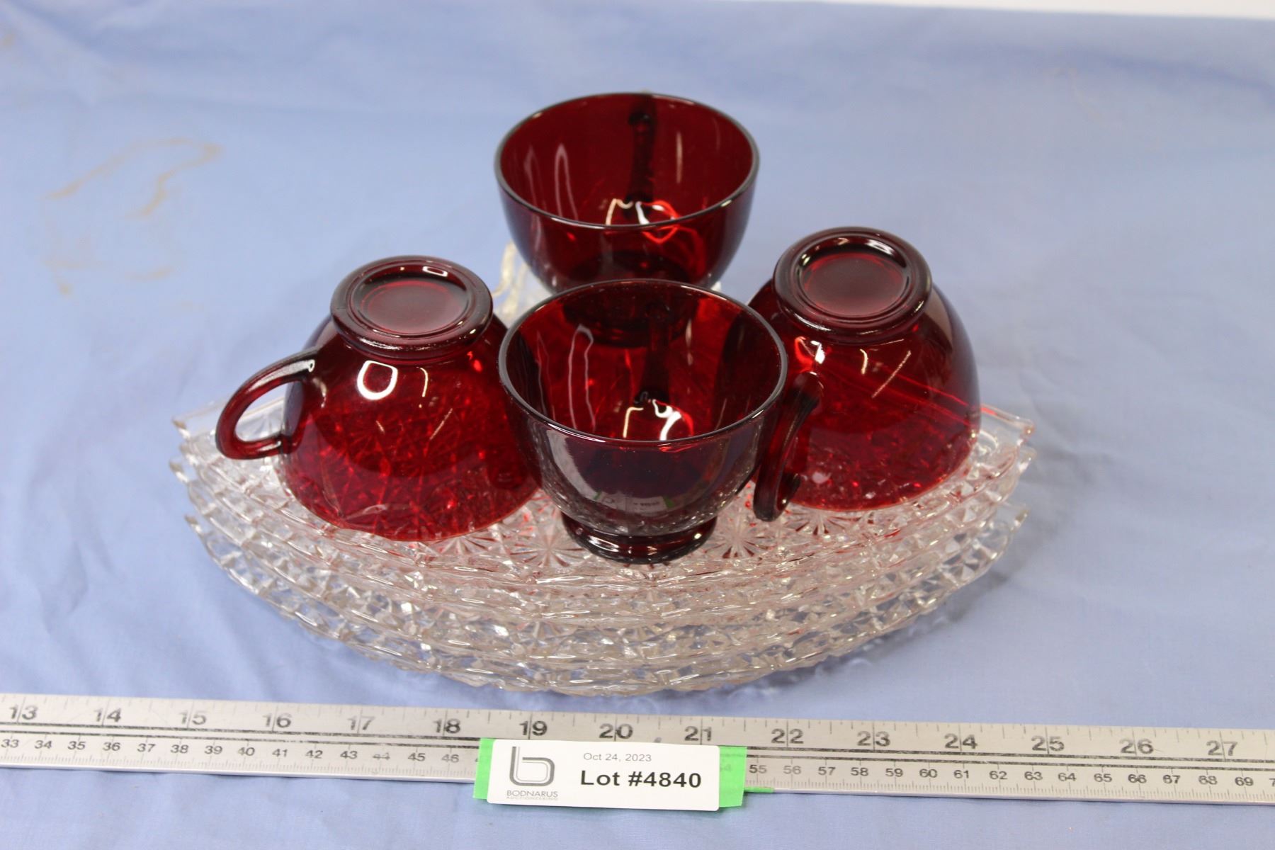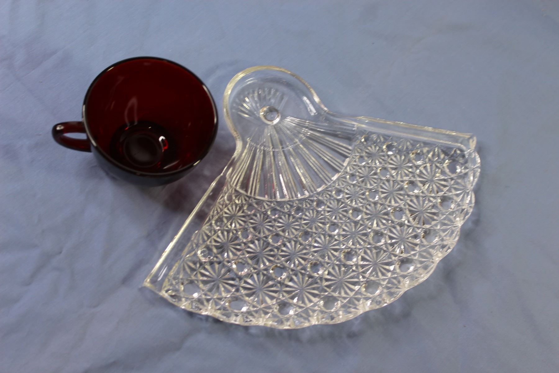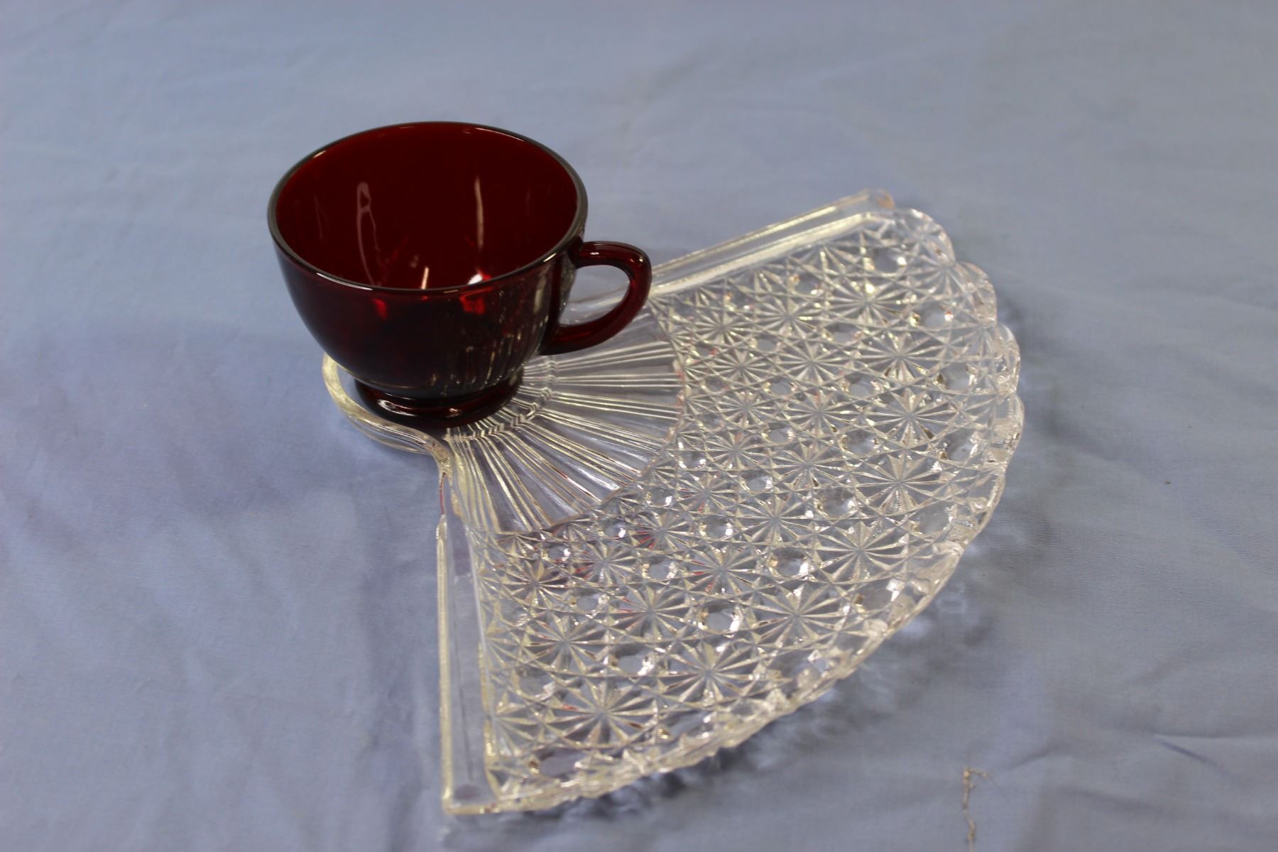 Anchor Hocking Fan/ Royal Ruby Snack Set