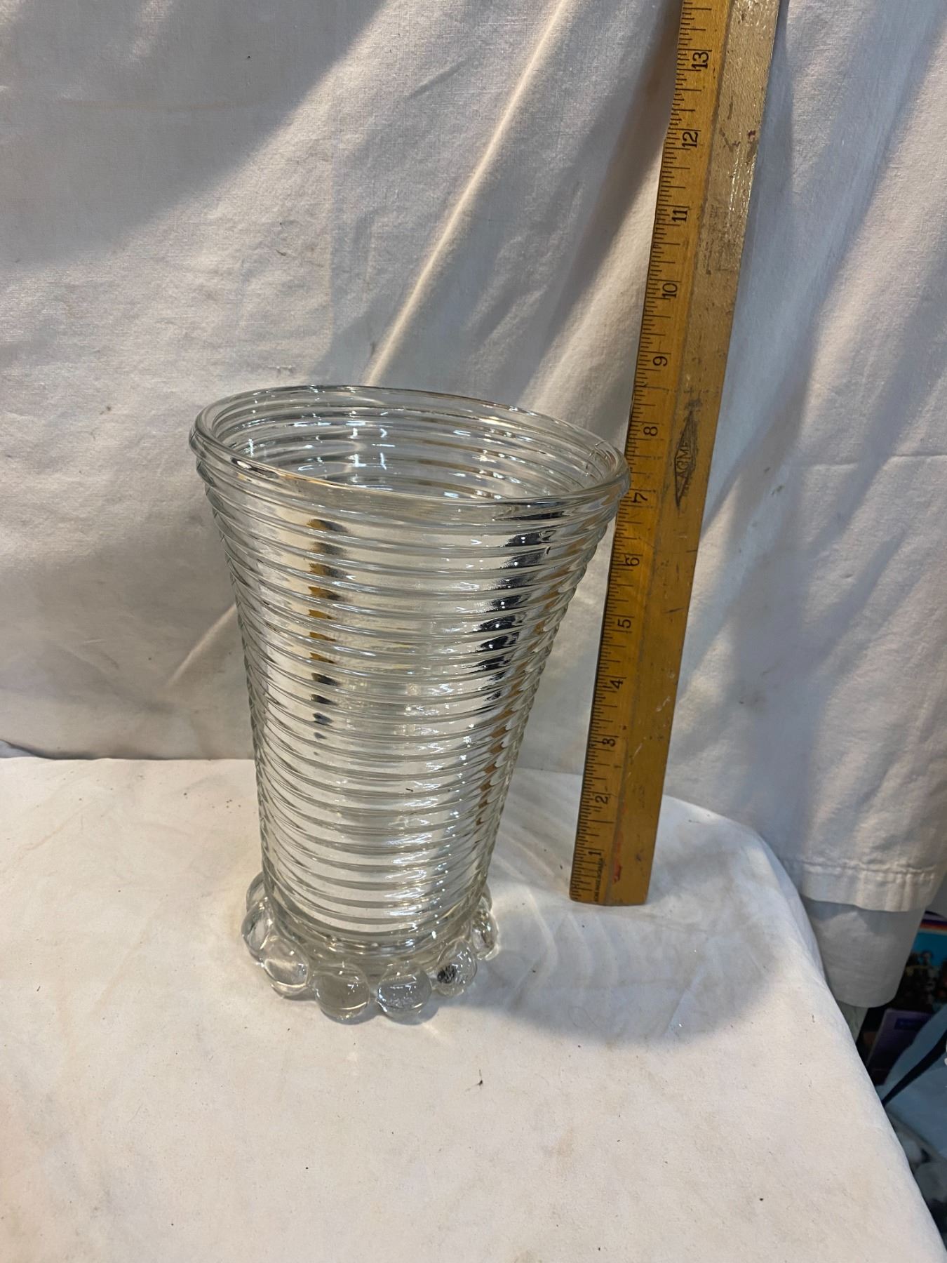 Anchor Hocking Manhattan Vase Horizontal Ringed Banded Clear Depression Glass Vintage
