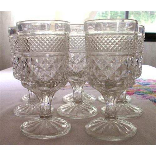 CHRISTMAS SALE. OFFERS WELCOME. Eight claret wine stems by Anchor Hocking in the clear Wexford pattern. All are in excellent condition with no nicks, chips or cracks.
