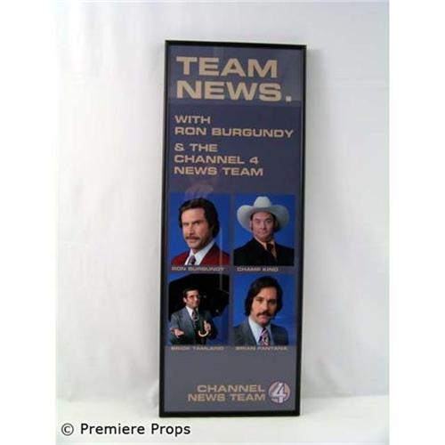ANCHOR MAN - From the personal collection of Shauna Robertson, Producer of Anchor Man - This is a screenused "Anchor Man" Poster of Ron Burgundy and the Channel 4 News Team in a black metal frame with glass enclosure.  Measures approx. 28.5" x 11" x 1".  This item is oversized and will require additional shipping costs. Please e-mail for shipping rates before bidding. Add this key prop from the hilarious film to your movie memorabilia collection today!  (SHRO3003)