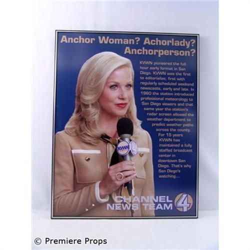 Anchorman: The Legend of Ron Burgundy - If Ron Burgundy says it... it's the truth! From the set of the absurdly funny film, this is a screenused poster of Veronica Corningstone (Christina Applegate) for the Channel 4 News Team inside a silver and black metal frame with glass enclosure. This poster, from the personal collection of Producer, Shauna Robertson, measures approximately 32.5" x 25" x 1. This item is oversized and will require additional shipping costs. Please e-mail for shipping rates before bidding. Don't hesitate to add this exclusive poster to your movie memorabilia collection today! (SHRO3002)