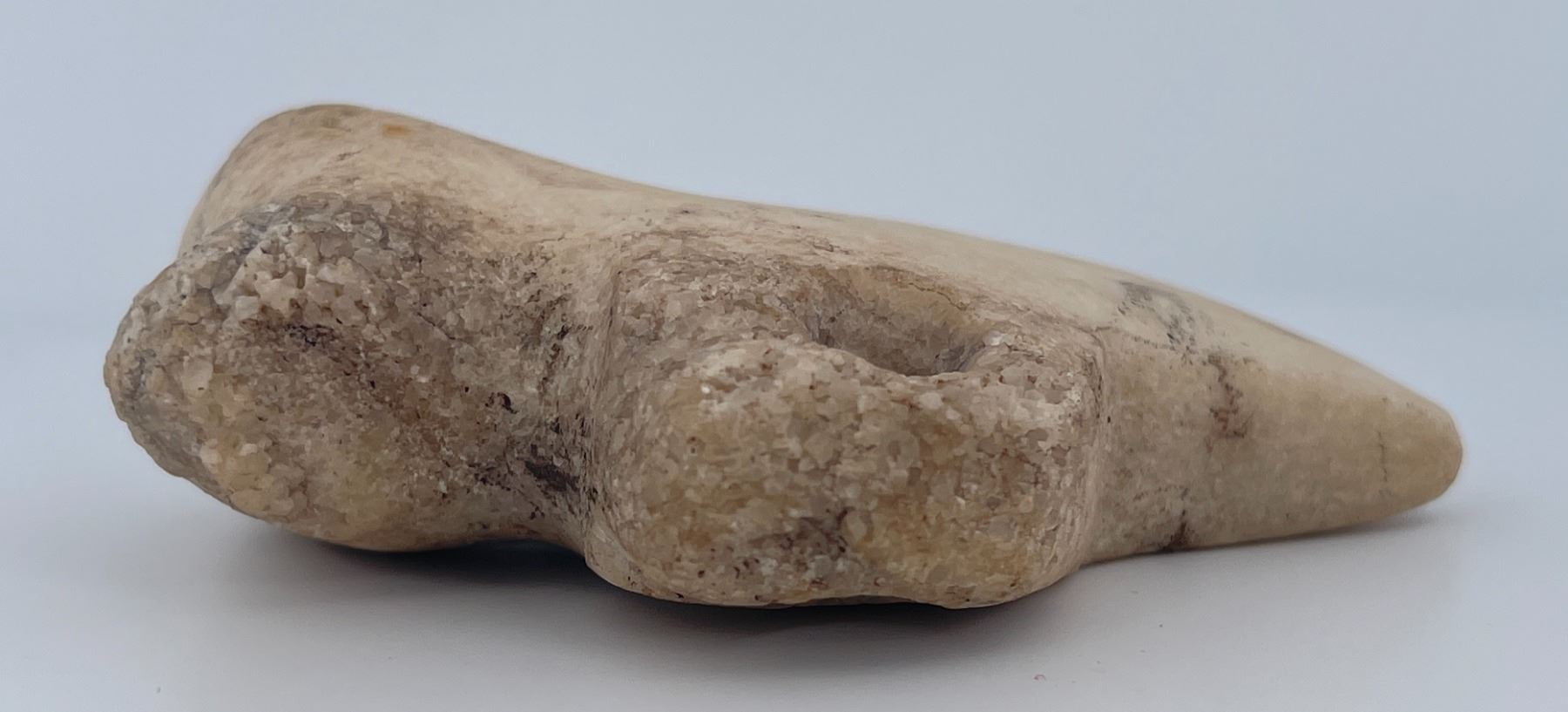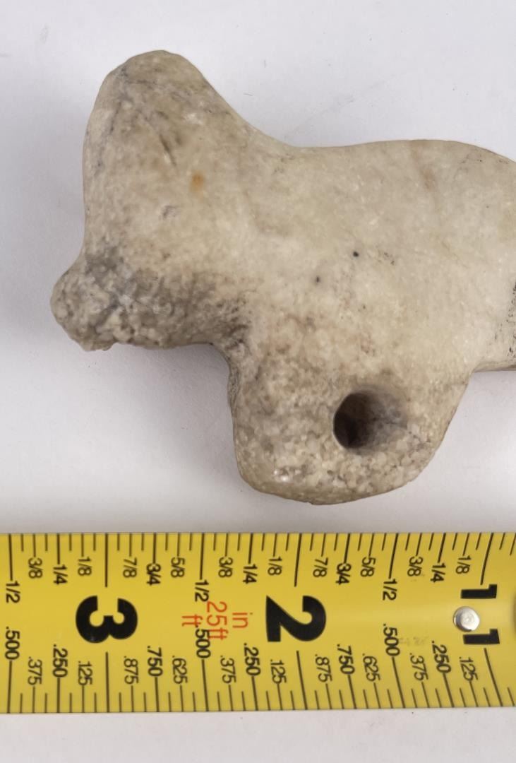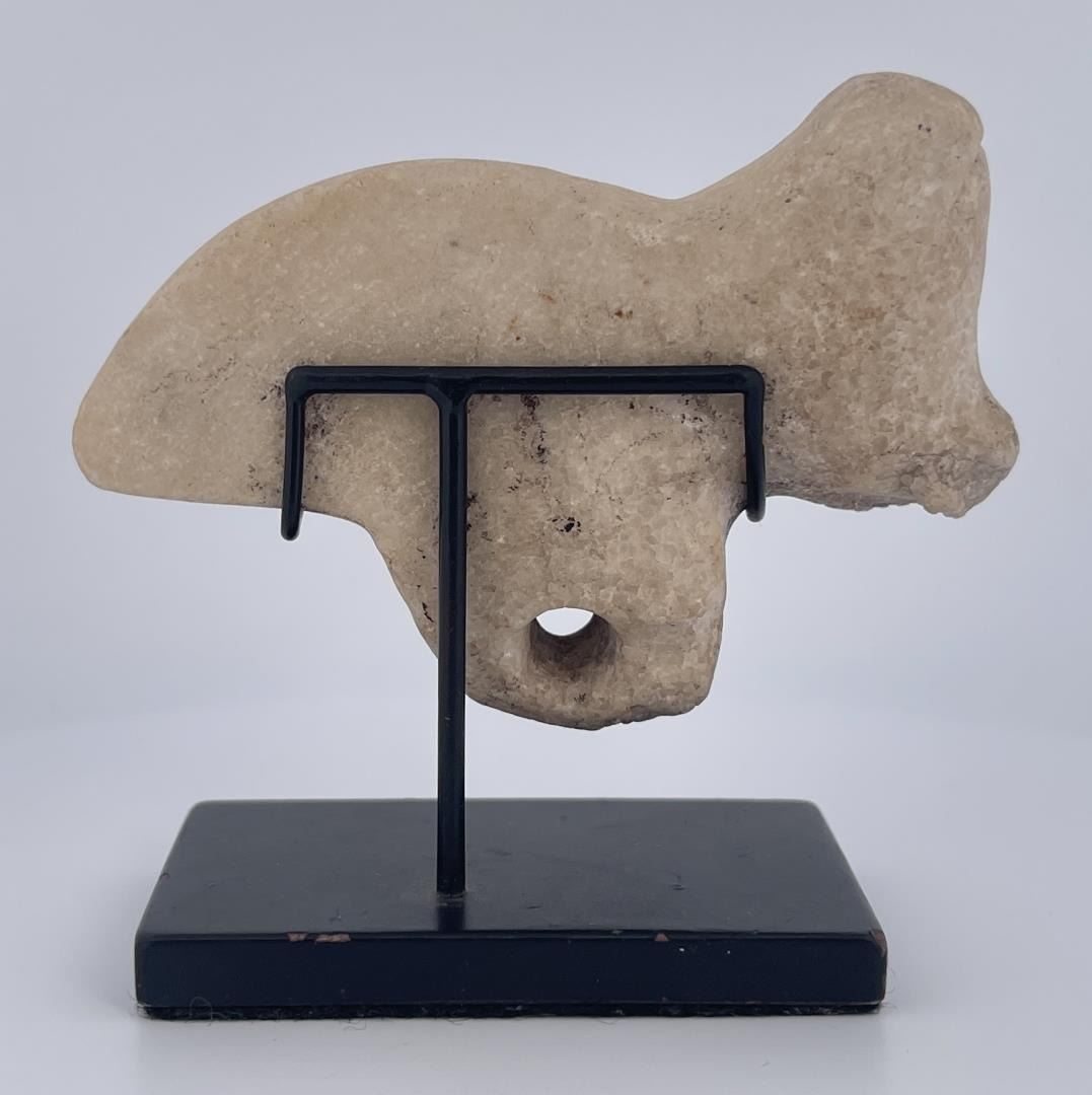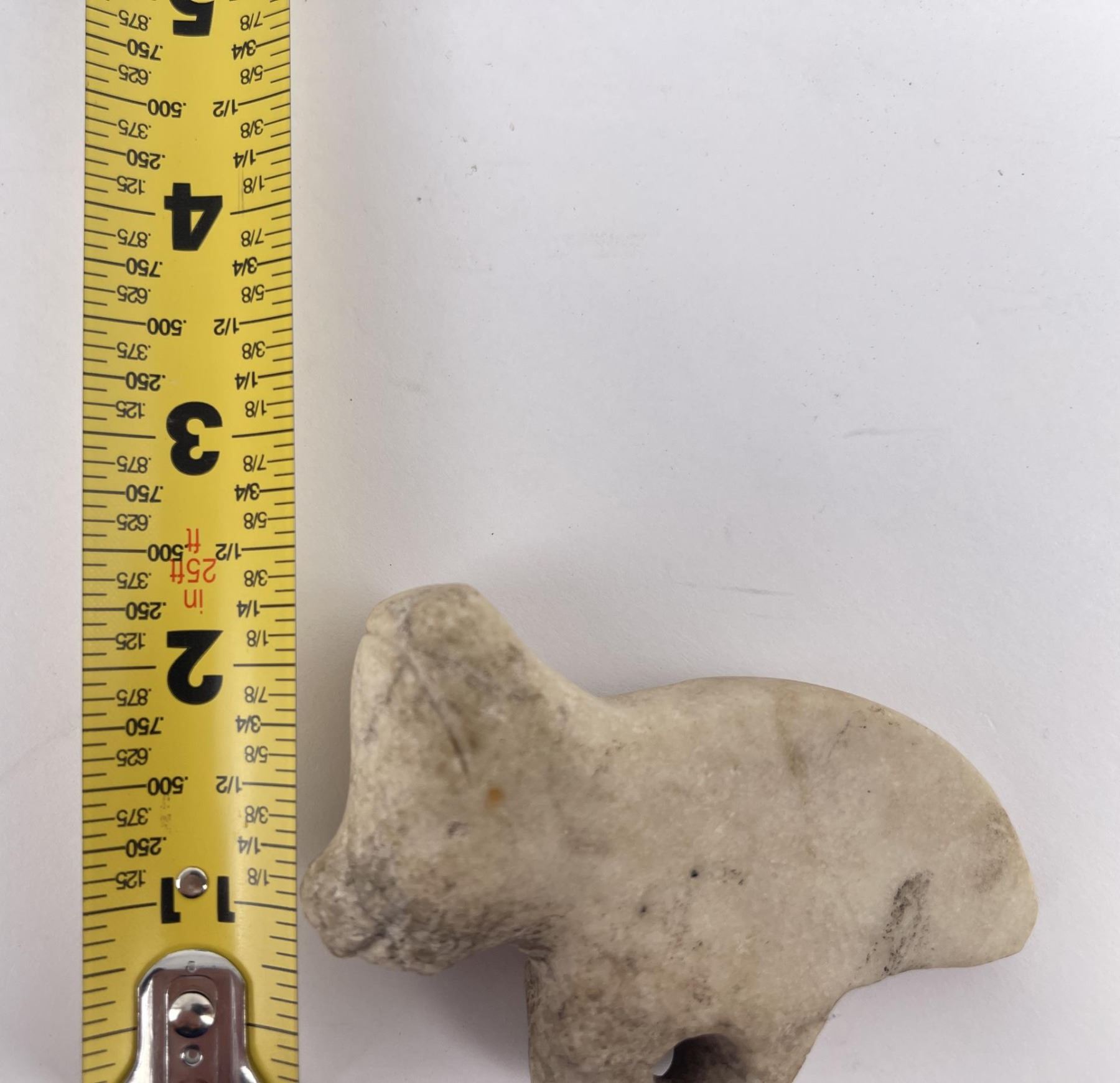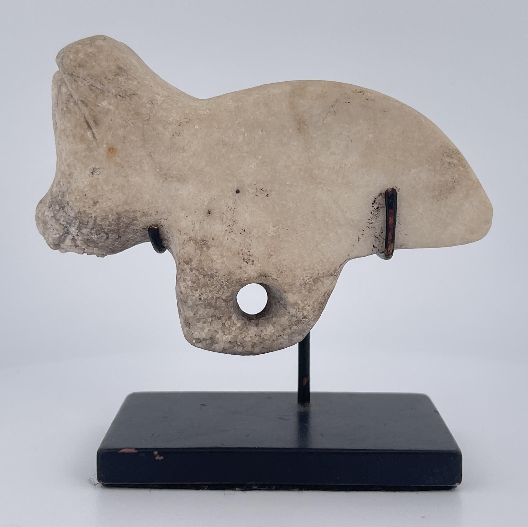Superb old piece. Carved in the shape of an animal. Approximately 3" long, by 3.25" tall. Shows honest wear from age. Guaranteed authentic. Allard Auction Collection Inv: JLU