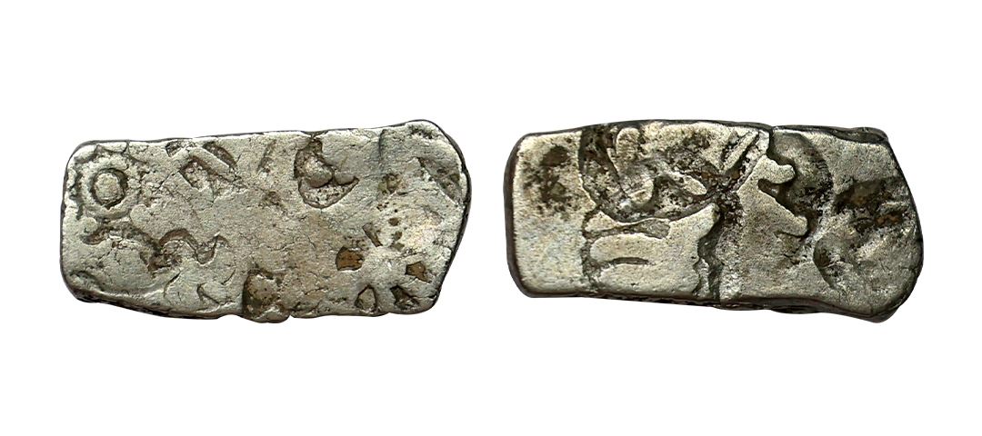 Ancient, Archaic Punch Marked Coinage, from middle Ganga valley, Kosala Mahajanapada, (6th-4th Century BC), Silver ½ Vimshatika, 2.39 gms, very fine, very scarce.