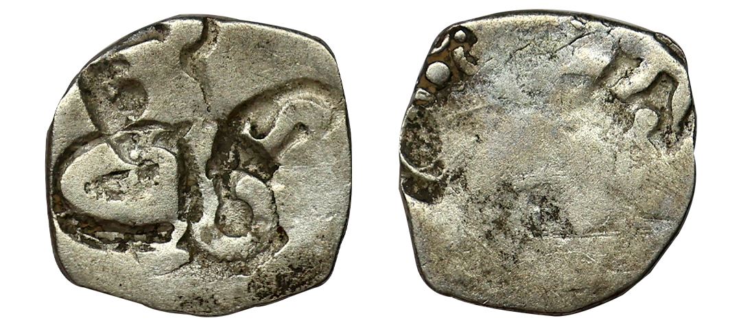 Ancient, Archaic Punch Marked Coinage, from middle Ganga valley, Kosala Mahajanapada, (6th-4th Century BC), Silver ½ Vimshatika, 2.66 gms, very fine, very scarce.