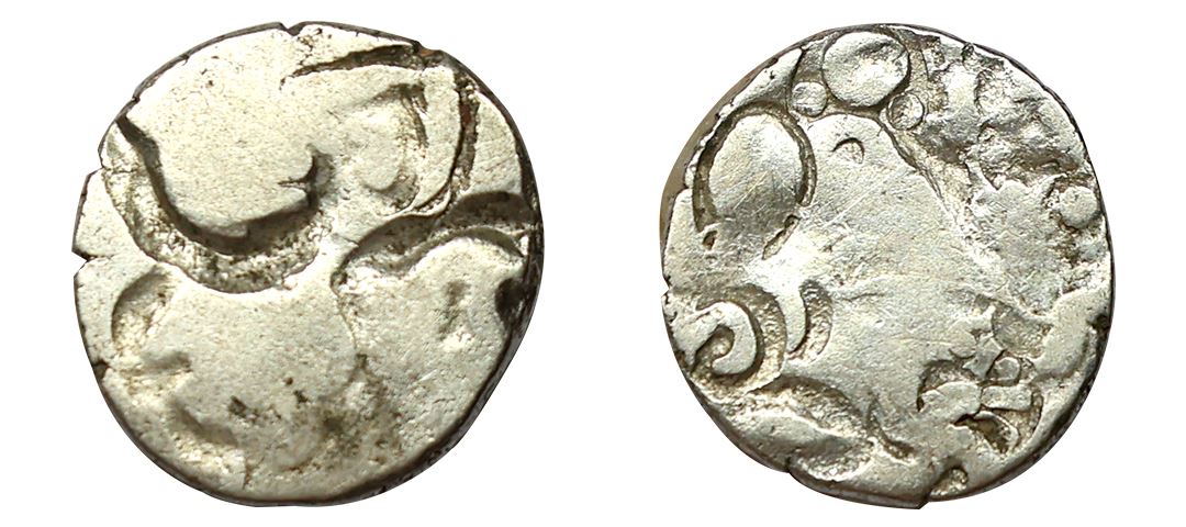 Ancient, Archaic Punch Marked Coinage, from middle Ganga valley, Kosala Mahajanapada, (6th-4th Century BC), Silver ½ Vimshatika, 2.53 gms, very fine, very scarce.