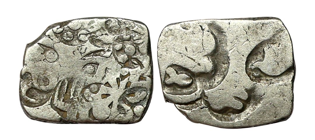 Ancient, Archaic Punch Marked Coinage, from middle Ganga valley, Kosala Mahajanapada, (6th-4th Century BC), Silver ½ Vimshatika, 2.58 gms, very fine, very scarce.