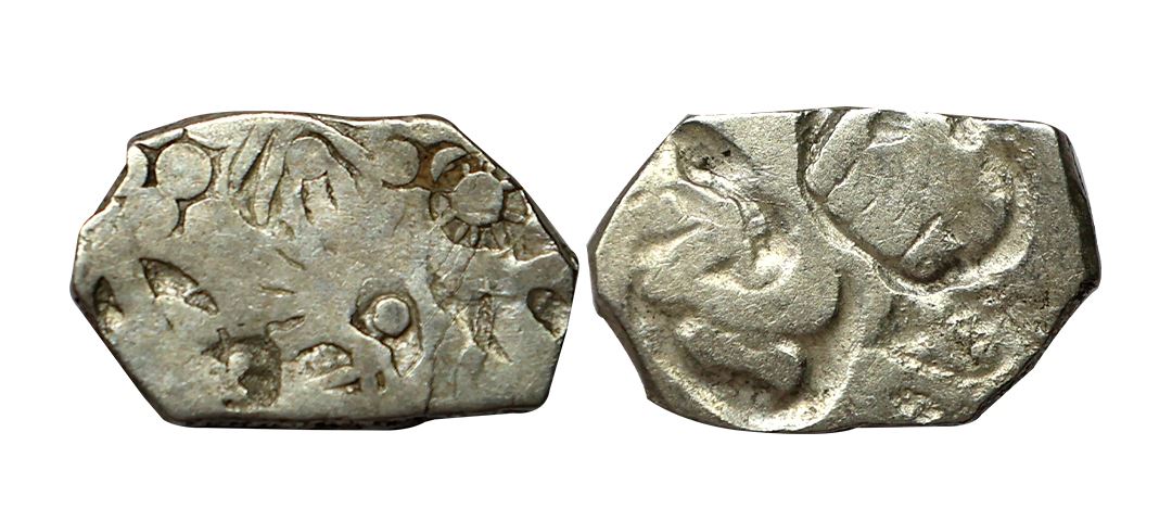Ancient, Archaic Punch Marked Coinage, from middle Ganga valley, Kosala Mahajanapada, (6th-4th Century BC), Silver ½ Vimshatika, 2.47 gms, very fine, very scarce.