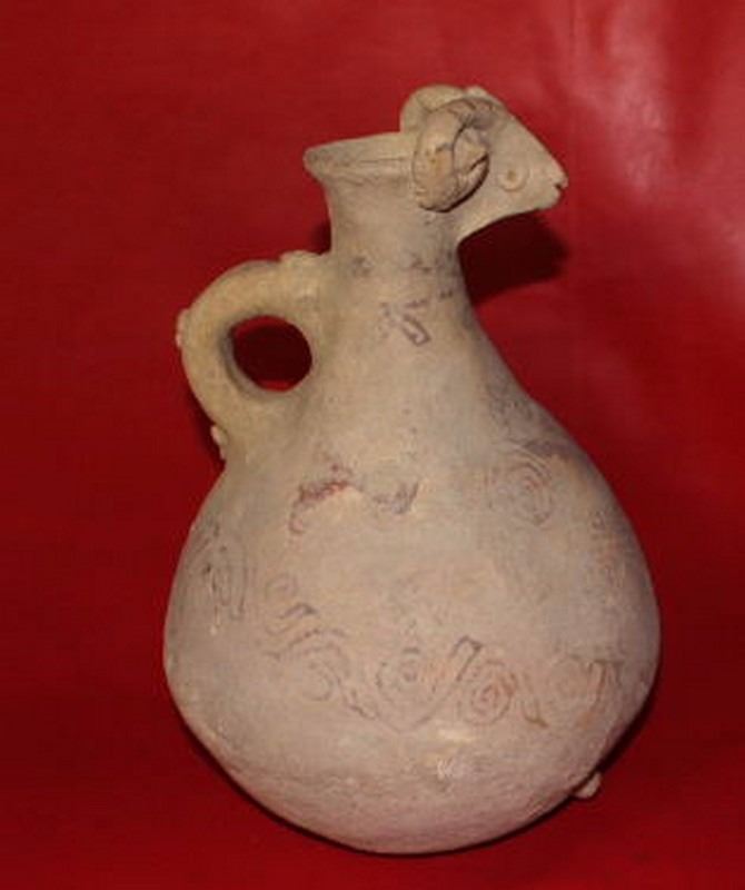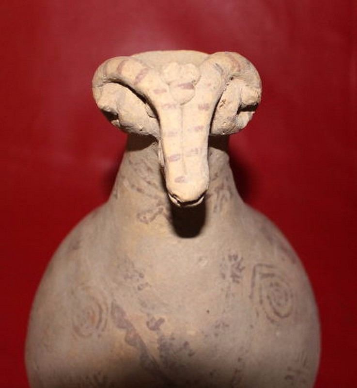 Ancient Artifact: Ceramic Figure w. Ram Horns Harappa 2000-1000 B.C, 14x9", 6-lbs