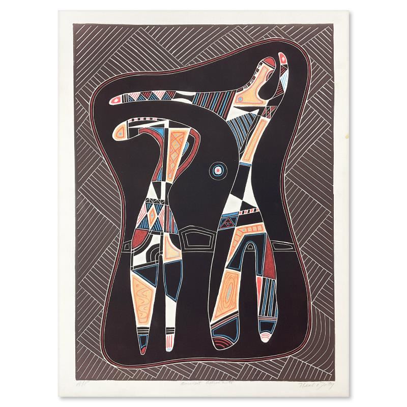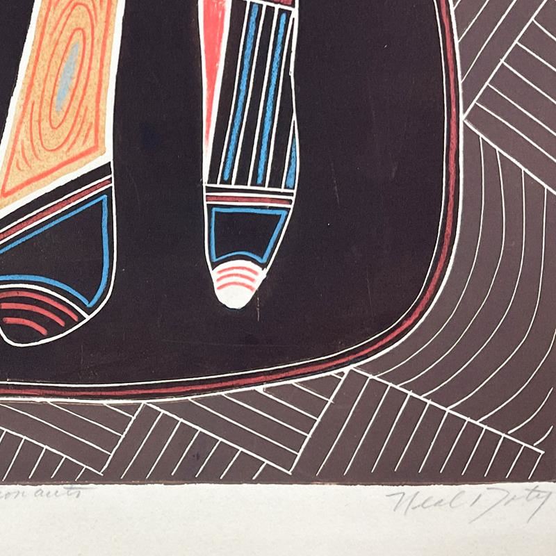 "Ancient Astronauts" is a unique variation mixed media on paper from an AP edition by Neal Doty (1941-2016), hand signed by the artist. Includes Letter of Authenticity. Measures approx. 18.5" x 24.5" (border), 16" x 22" (image). There are some imperfectio