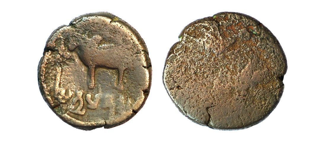 Ancient, Ayodhya, Satyamitra (3rd Century AD), Copper Heavy Unit, 6.96 gms, Obv. A humped bull standing facing left, Brahmi Legend ‘SaTyaMiTaSa’ below, Rev. Traces of rooster facing a palm tree, Pieper # 1062, fine, very scarce.