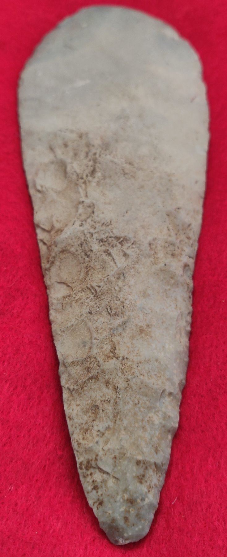 Ancient Aztec Ceremonial Knife, pre-1492. Made of gray chert, the item measures 8 3/4" x 3" x 1/2". Mexico City, Mexico. Frame not included. Condition: Minor nicks, see images. Shipping: $30.00 w/insurance and signature, due to value.
