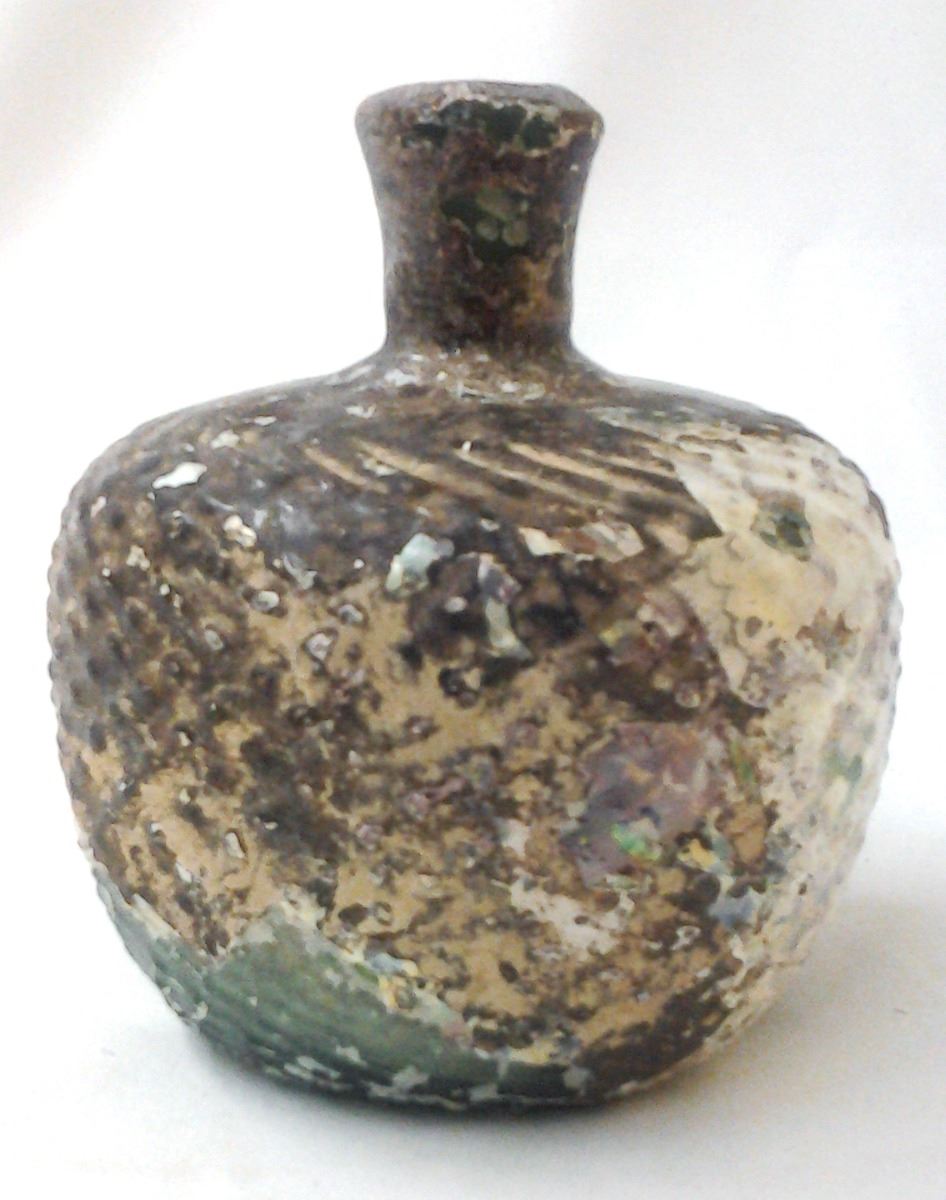 Super Collectible!!! Rare Ancient 8-9th B.C.E Bactrian Age Glass Bottle w/ Black Patina