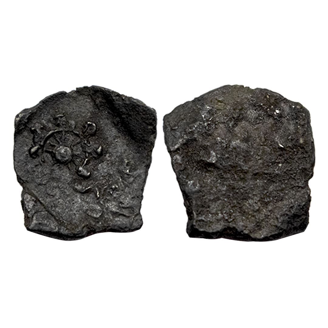Ancient, Bhadra Mitra Dynasty, Kingdom of Vidarbha (1st Century BC), Copper Alloy Unit, 3.26 gms, Chakra on obverse, traces of under-type brahmi legends visible, fine, very scarce.
