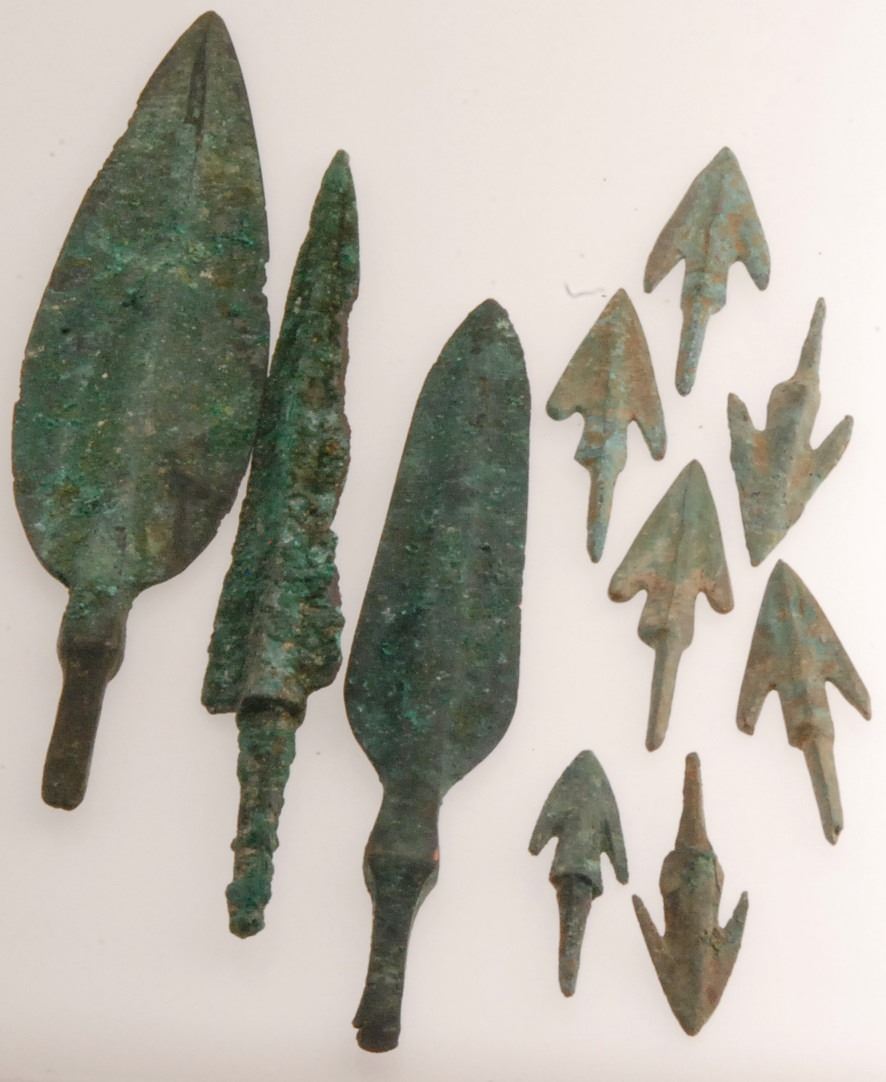 Ancient Bronze Spearheads and Arrowhead over 4000 yrs Old, 5-2" range