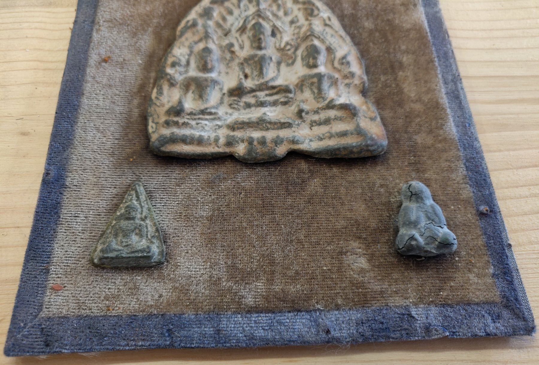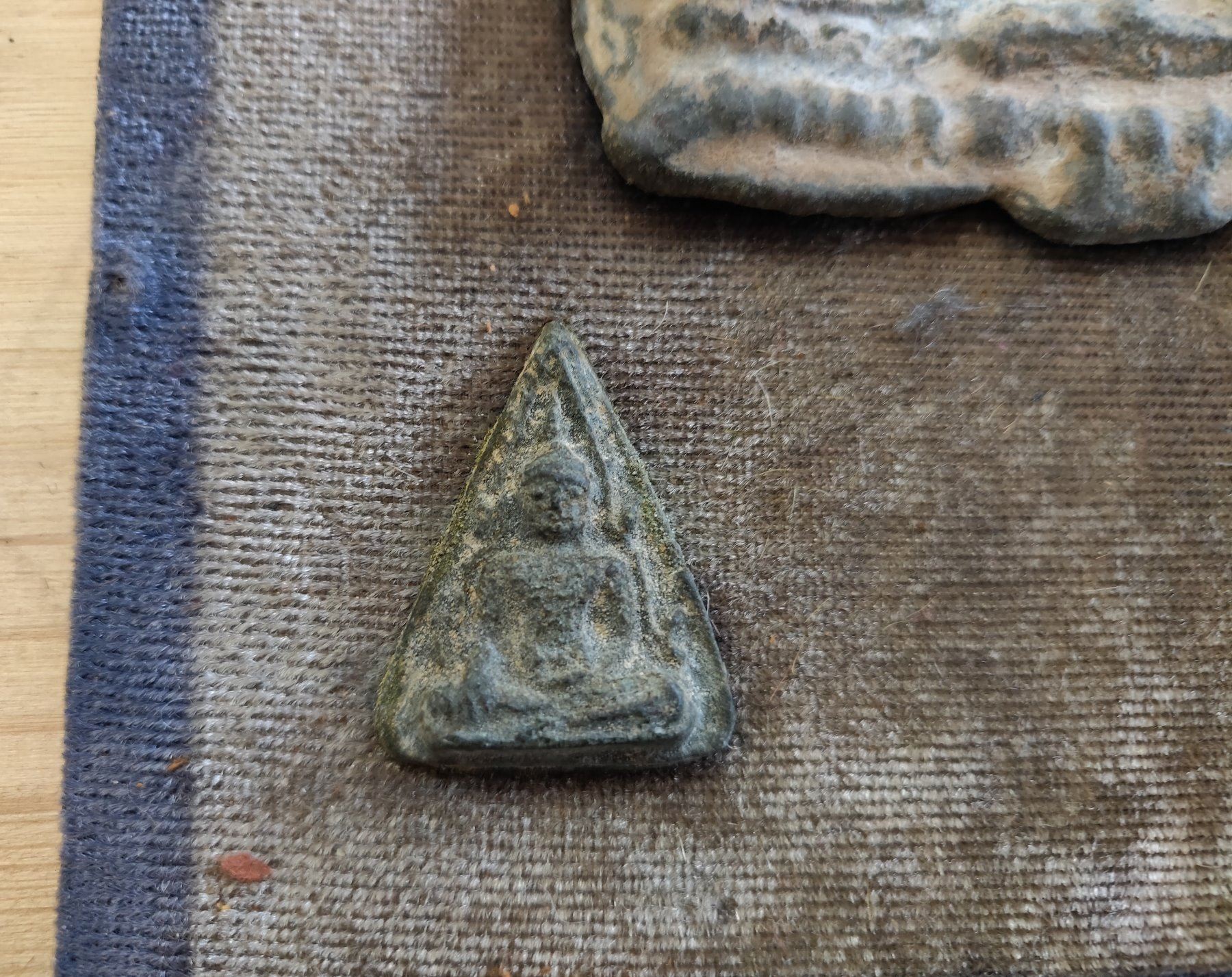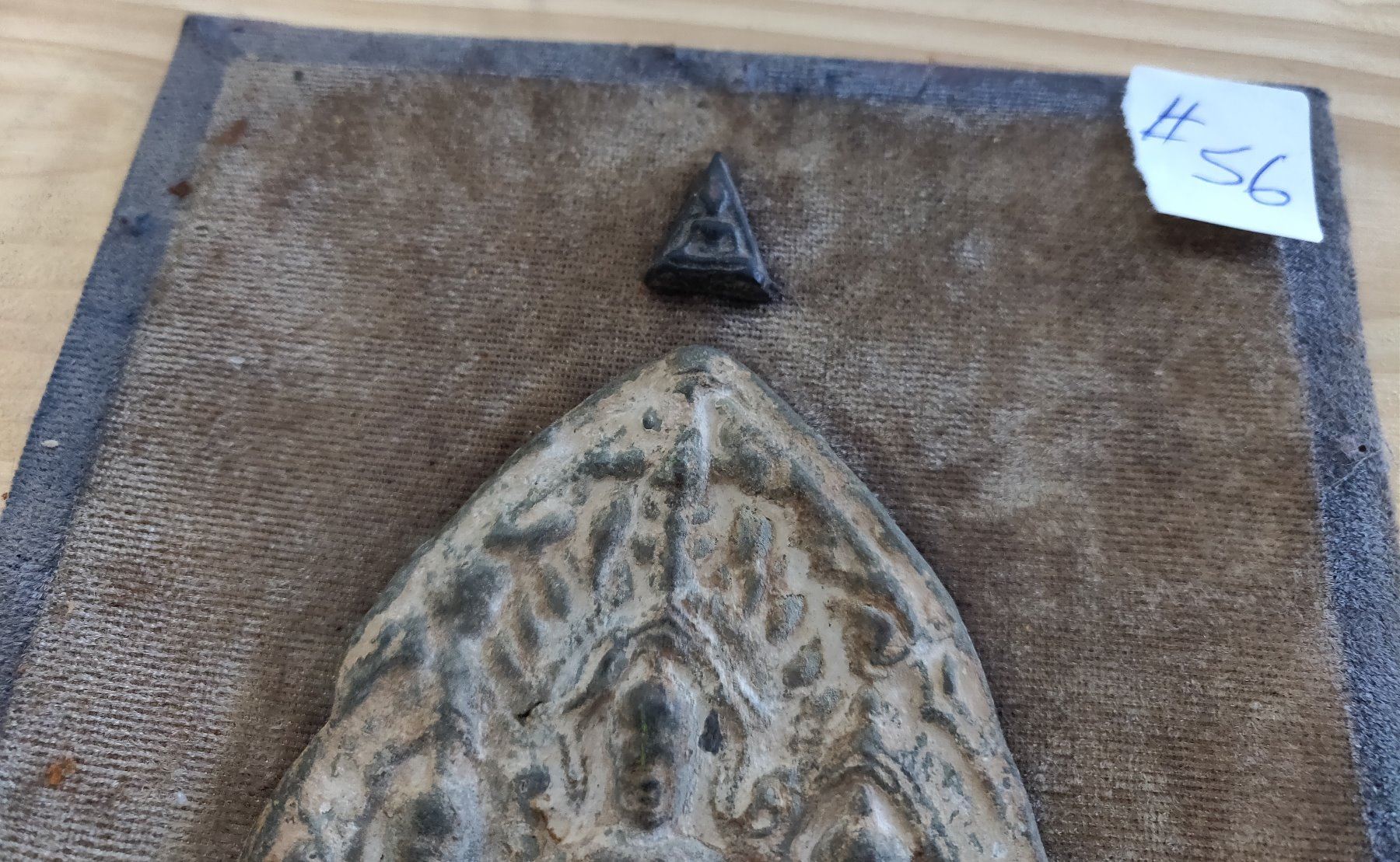 Ancient Buddha Plaque, c. 1600s. Made of soft metal, the plaque measures 6" x 8". Collection of early Buddha figures. Possibly from Thailand. Condition: Heavy patina, see images. Shipping: $20.00 w/insurance and signature, due to size and value.