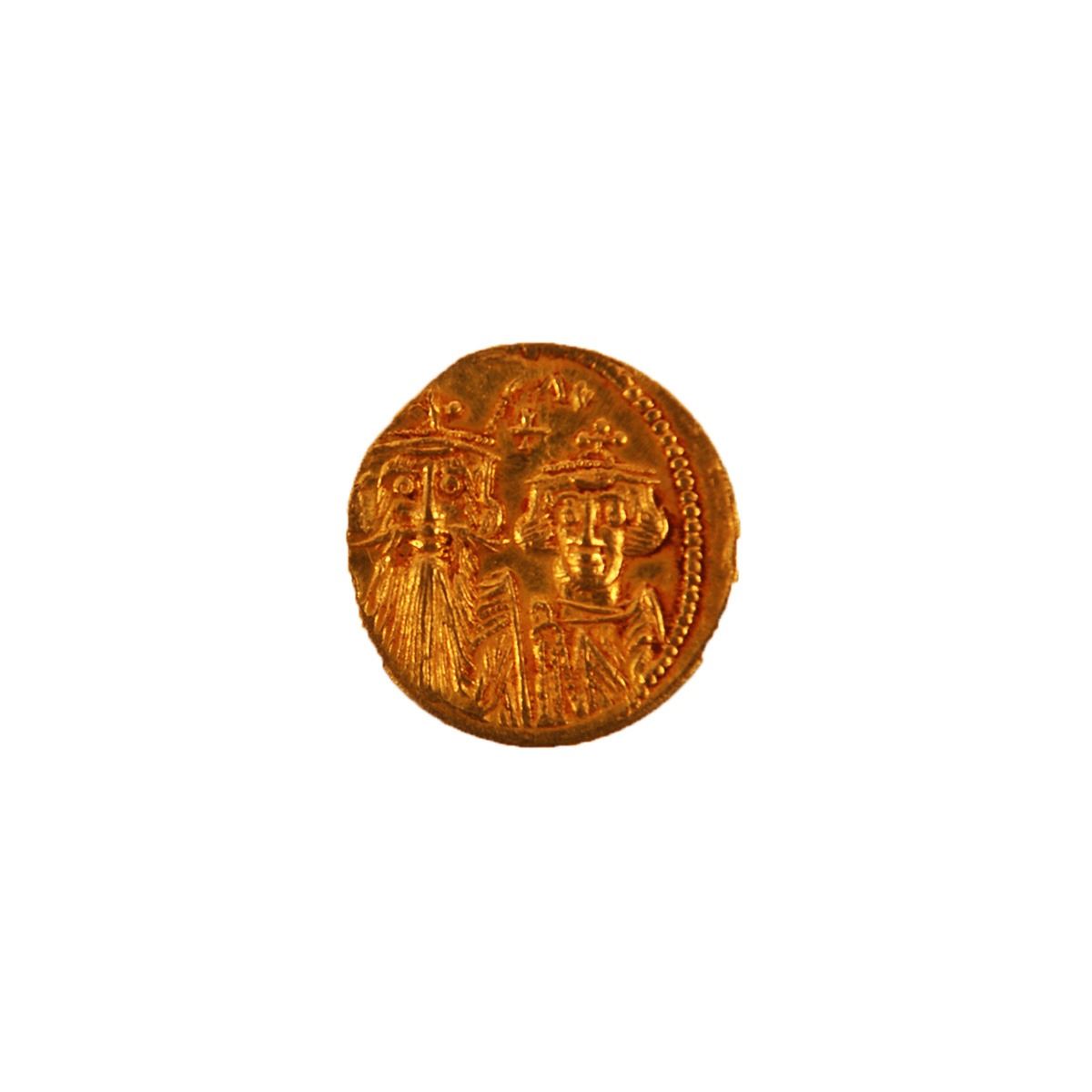 Constans II, with Constantine IV, Heraclius, and Tiberius. 641-668. AV Solidus (20mm, 4.15 gm). Constantinople mint, 4th officina. Struck circa 661-663. Crowned and draped busts facing of Constans, wearing plumed helmet, and Constantine; cross above / Cross potent set upon three steps; Heraclius and Tiberius, each holding globus cruciger, standing facing to either side; ∆//CONOB. DOC 30d; MIB 31; SB 964. Extremley Fine.
