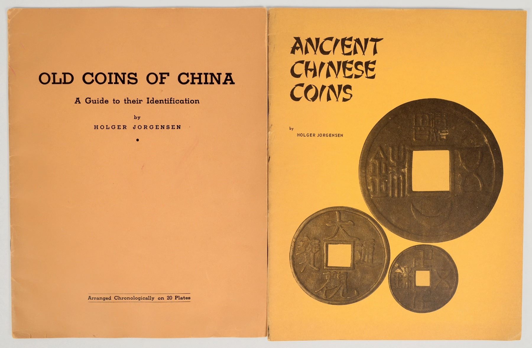 Two paperback books by Holger Jorgensen: "Old Coins of China: A Guide to their Identification," undated; and "Ancient Chinese Coins" undated, each about 20 pages with illustrations.