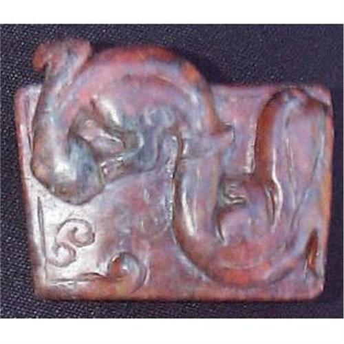 Han dynasty or earlier jade scabbard end decorated with hydra.The back features Tao Tieh mask. This is a high quality of jade carving done in yellow brown jade. The top has 3 holes for the attachment to the scabbard. Flawless ancient artefact. Size: 1.8 inches x 1.2 inches.