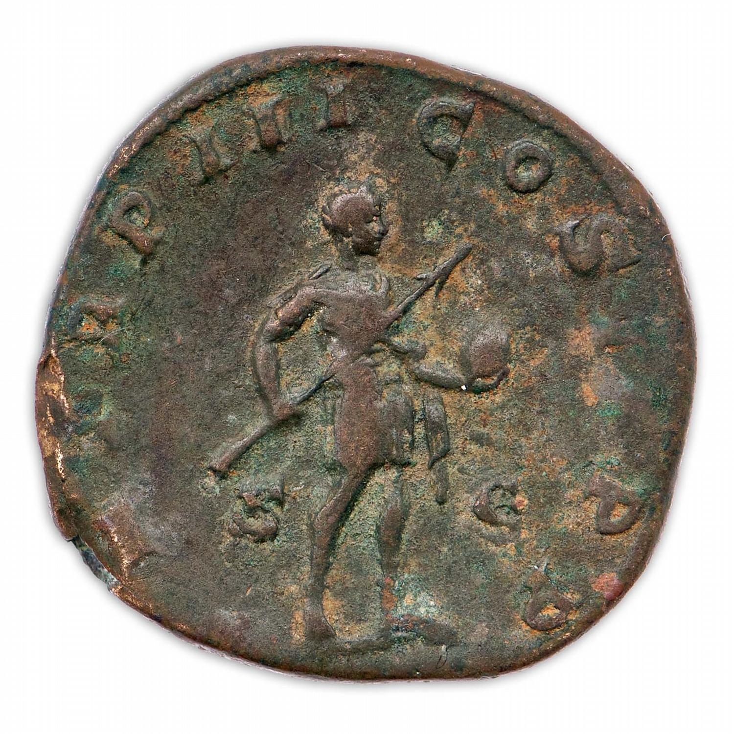 Ancient Coin - Gordian III AE Sestertius. Rome Mint, 240 AD. IMP GORDIANVS PIVS FEL AVG, laureate draped & cuirassed bust right / P M TR P III COS II P P S-C, emperor standing right holding spear & globe. Cohen 244, RIC 305a, 28mm . . . SLIGHTLY WORN BUT A FINE SPECIMEN!