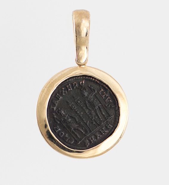 Ancient Coin Pendant, Constantius II, Set in 9ct Gold Surround