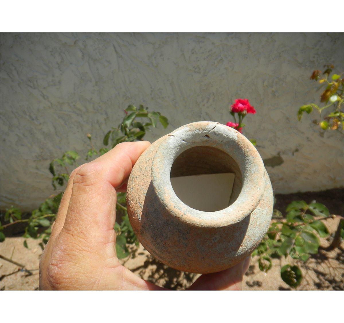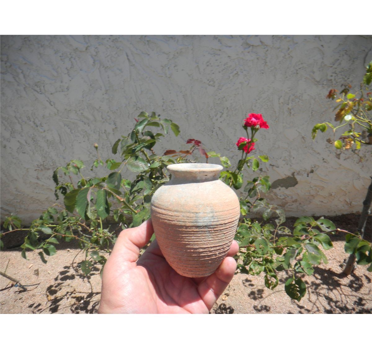 Ancient Egyptian Pottery Jar from the First through Fourth Dynasties 3200-2560 BC. Approximately Four and half by Three and half inches. Small break on lip which has been reglued. Good condition fine patina. Shipping $15.00