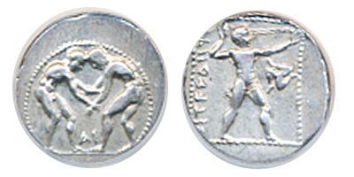 Aspendos in Pamphylia. 385-333 BC. Silver Stator. Wrestlers/Sling. ICG graded Extra Fine-45.