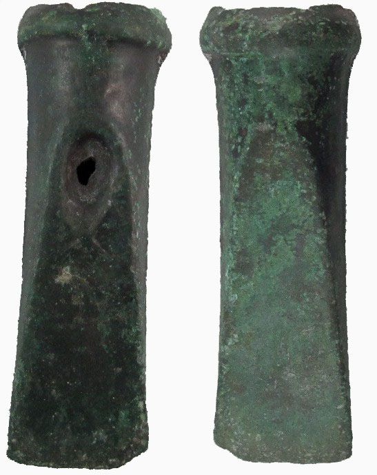 Ancient Greece; Bronze gouge, 4,6'' socketed tool with concave section towards tip. Used as an axe for military purposes. Overall nice condition.