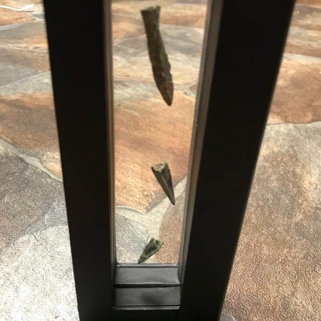 Ancient Greece, Rome ( 300-600 BC ) bronze arrowhead & spear points, in museum display case. Points range in size from  5/8" - 1 1/4" L. Case - 2 1/2" X 10". Â