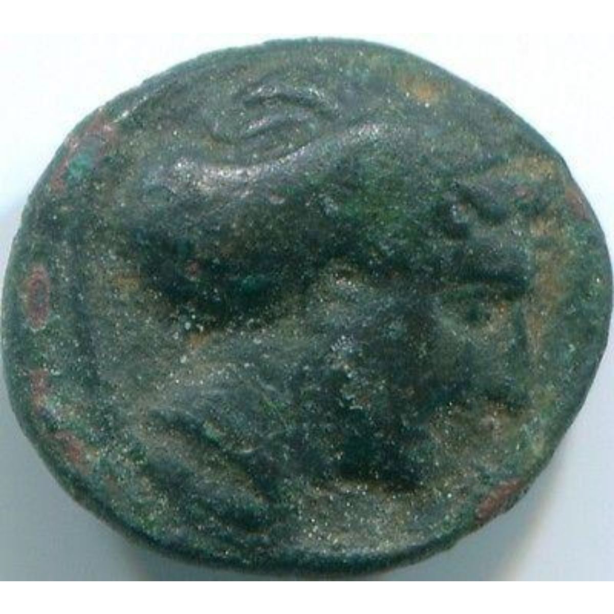 Ancient Greek Trident Coin. Obverse - Head of Apollo. Reverse - trident. 12mm.