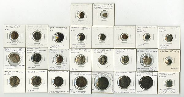 Ancient Greek and Roman Selection. Attic tetradrachm, crude; Other Greek (6); Ptolemaic and Roman Egypt (3); Judean (6); Roman (8); Angkor Wat lead and a small Parthian silver. Three silvers, others Bronze or other base metals. All in identified 2x2s. Very Good to Very Fine. A nice study group, some of which have been cleaned in the past. 26 pieces.
