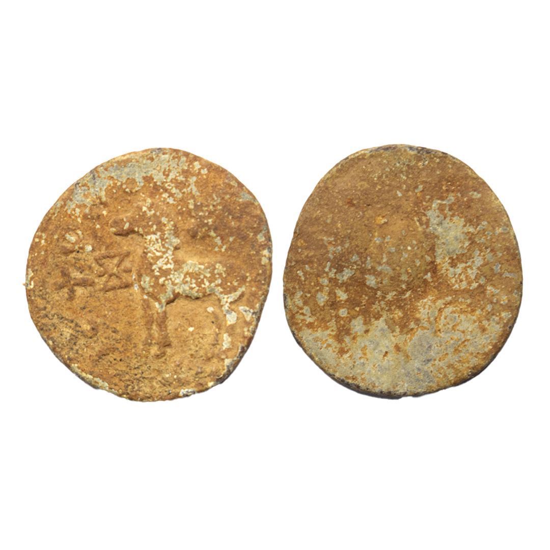 Ancient, Hiranyakas, (2nd-3rd Century AD), Lead Unit, 6.18 gms, Obverse: a horse standing to left, Reverse: defaced, fine, scarce.