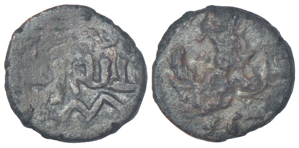 Coins with legend 'Virasena' from Mathura are generally attributed to the post-Kushan period. However, the palaeography of Brahmi seen on this coin, as well as its general fabric is indicative of a 1st century AD date. It is likely that this is a new ruler, either from Mathura or from Kaushambi.
