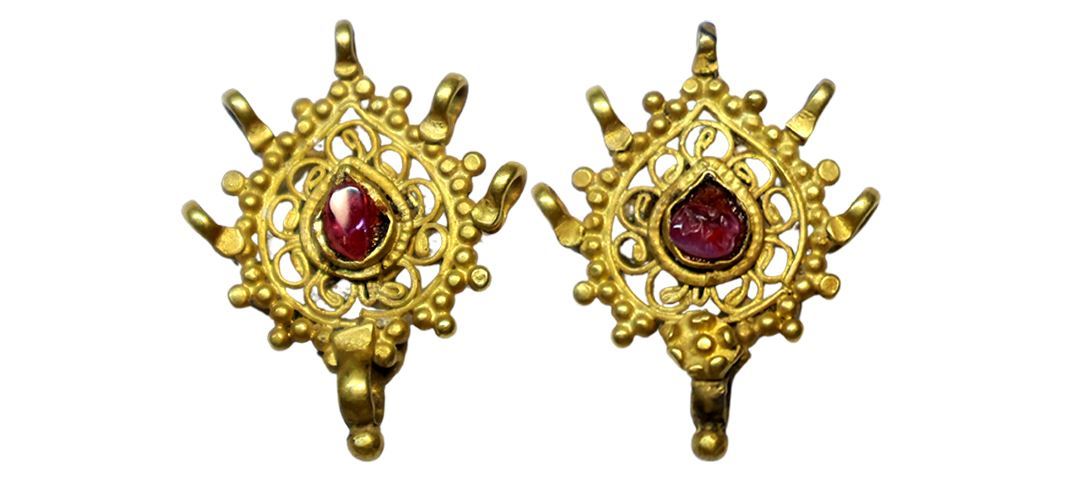 Post Gupta Period, Central Indian Region, Gold Pendant with Ruby Stone, 2.79 gms, extremely fine, very rare.