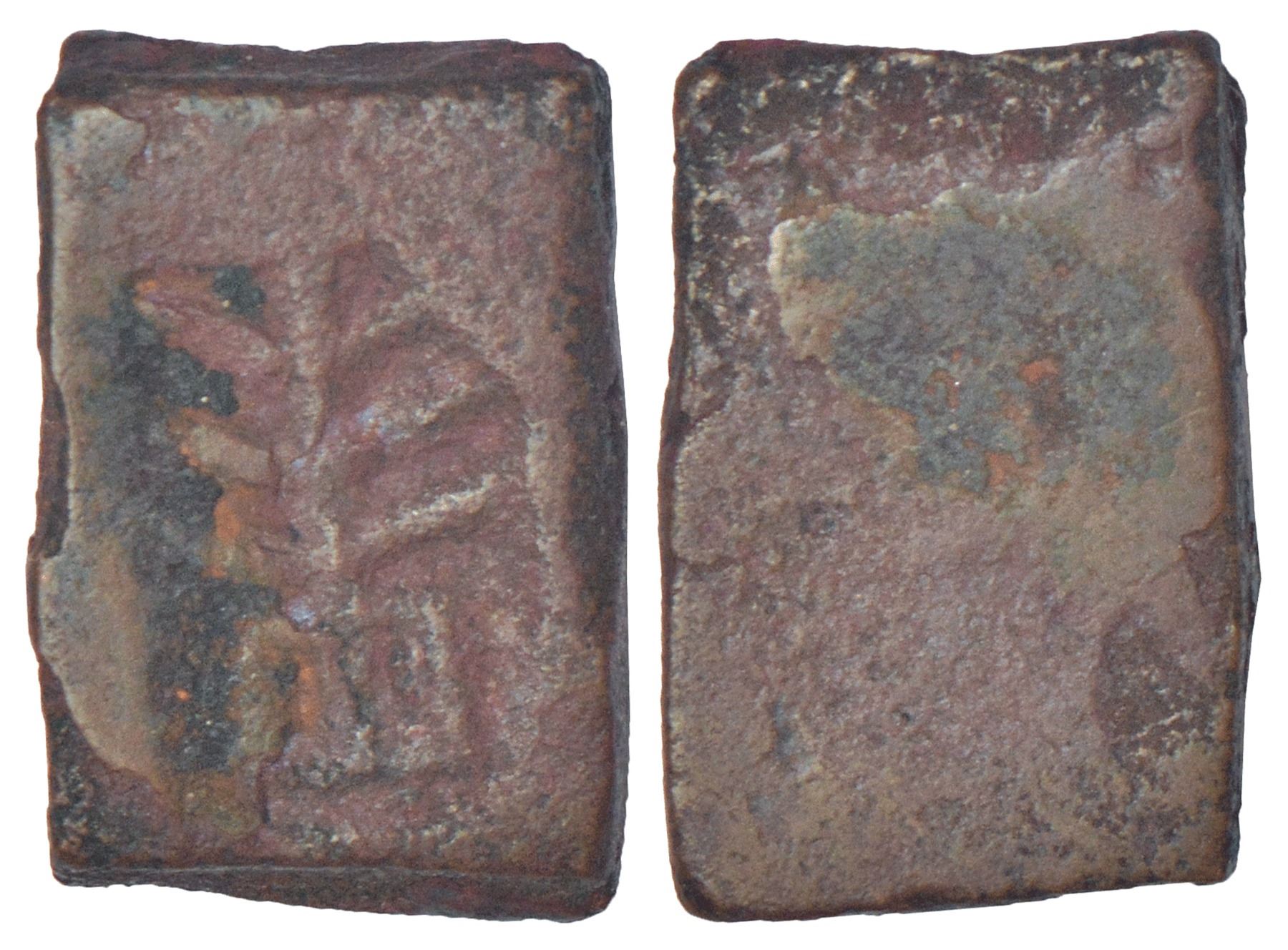 Taxila - uninscribed copper die-struck local coinage of post-Mauryan period, (c.200-150 BC), uniface series, 'tree' type, not listed in PAIC, 3.83g. Obv: Tree-in-railing in square incuse. Rev: Plain.