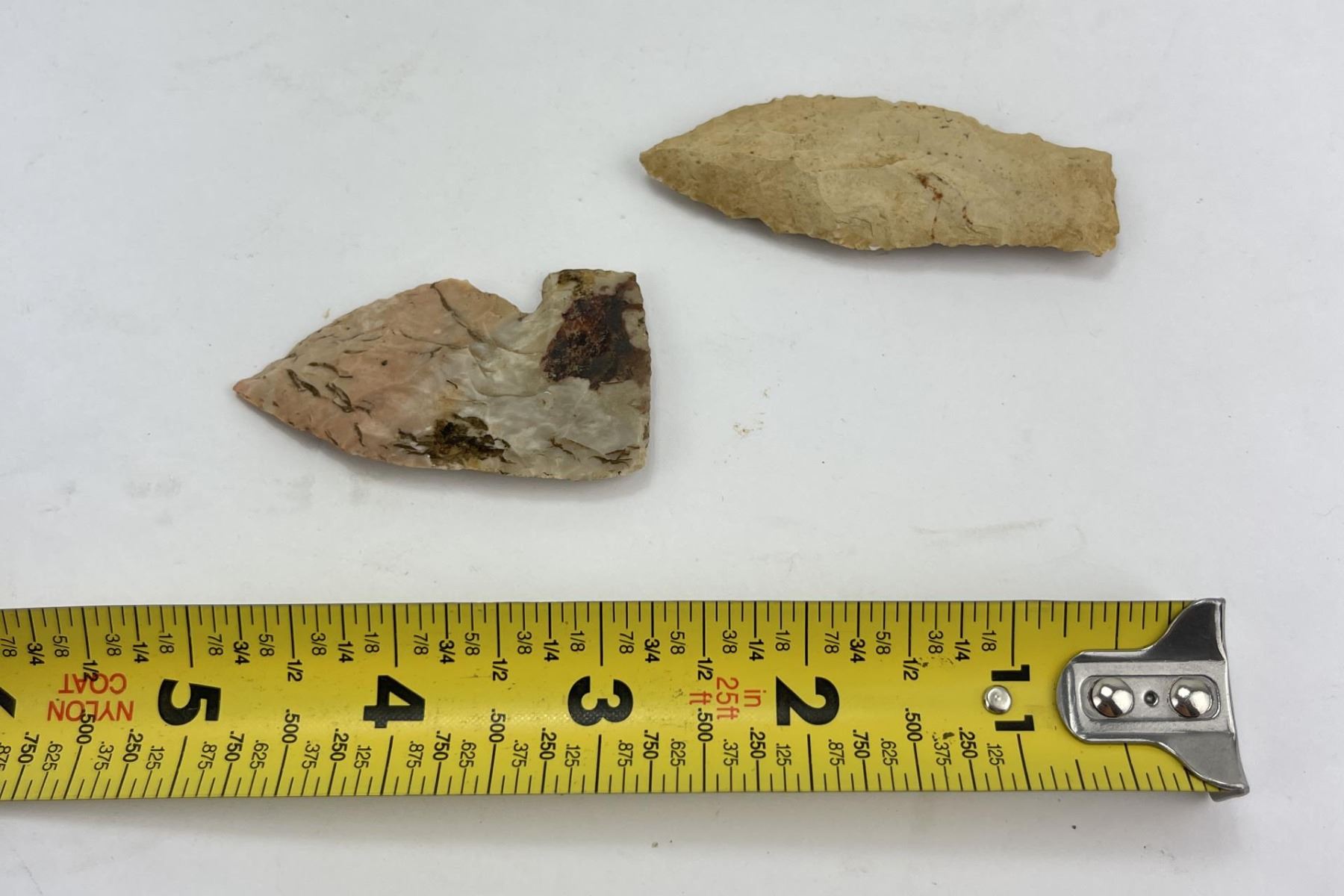 Very nice grouping. One side notched point. The other resembles a clovis or possibly agate basin.