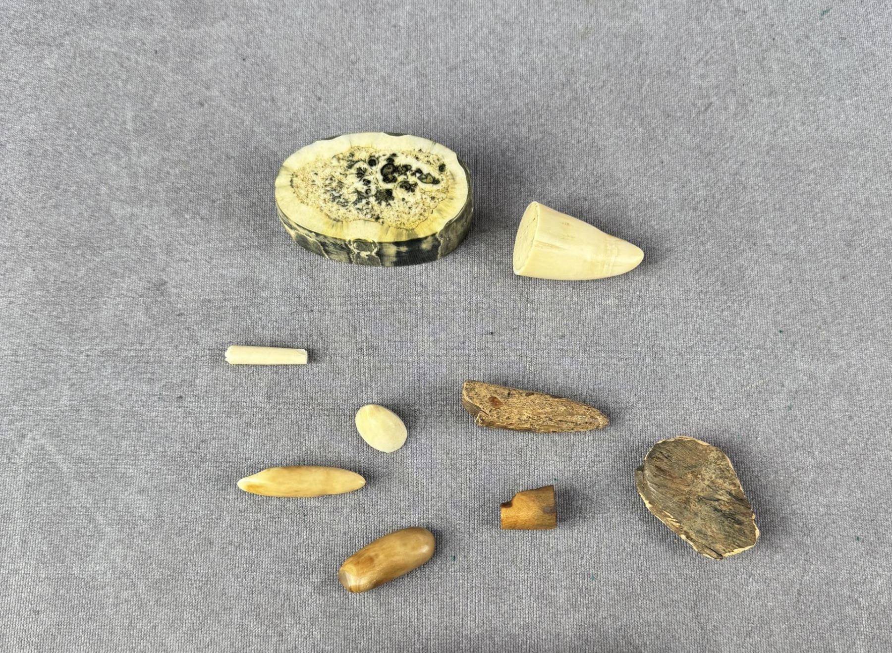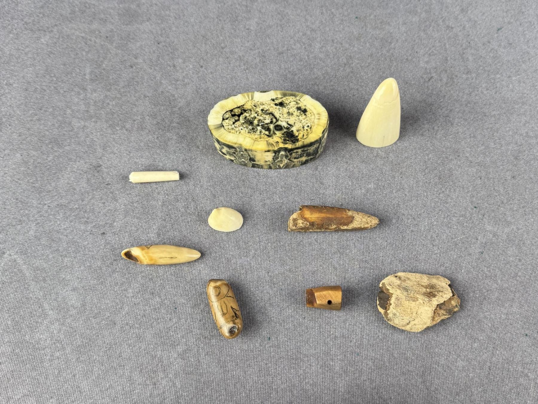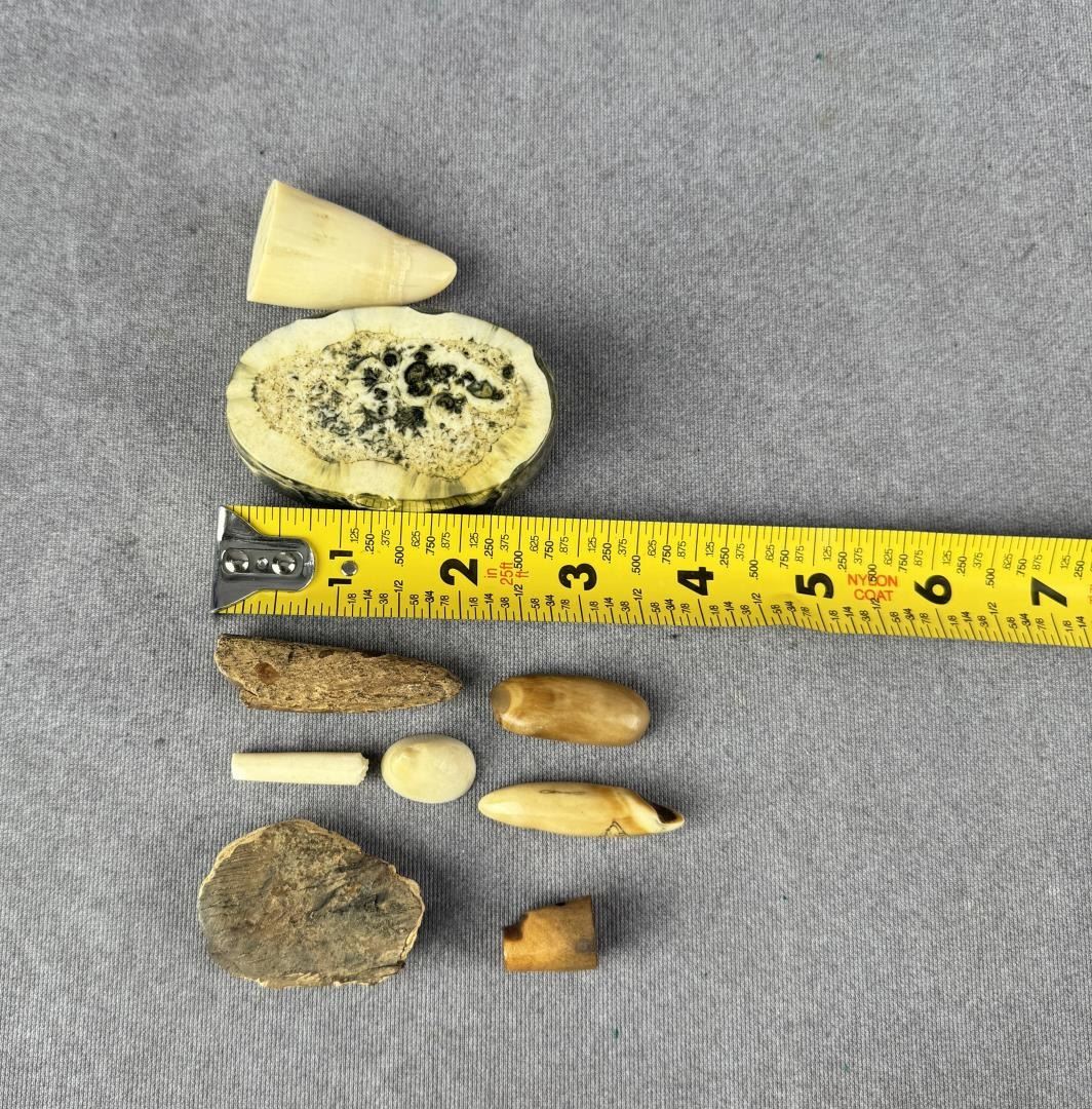 Nice grouping of items, most fossilized. Native made prior to 1972. 155.5 grams. This item cannot be shipped to Oregon, California, Hawaii, New York, New Jersey, Internationally, or any other state that prohibits.