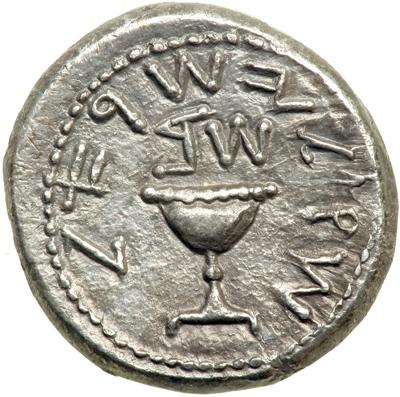 Ancient Judaea. The Jewish War, 66-70 CE. AR Shekel (13.54 g) dated year 2 (67/8 CE)