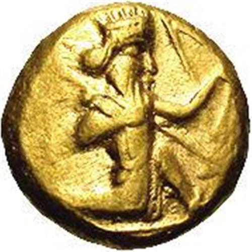 <B>Achaemenid Kingdom of Persia. Time of Darios I to Xerxes II.</B></I> Ca. 485-420 B.C. AV daric (15 mm, 8.37 g). Persian king or hero in kneeling-running stance right, holding spear and bow / Incuse punch. Carradice IIIb, A/B, pl. XIII, 27. VF. <BR><BR><b>Shipping:</b> Coins & Currency (<a target="_blank" href="http://www.heritageauctions.com/common/shipping.php">view shipping information</a>)