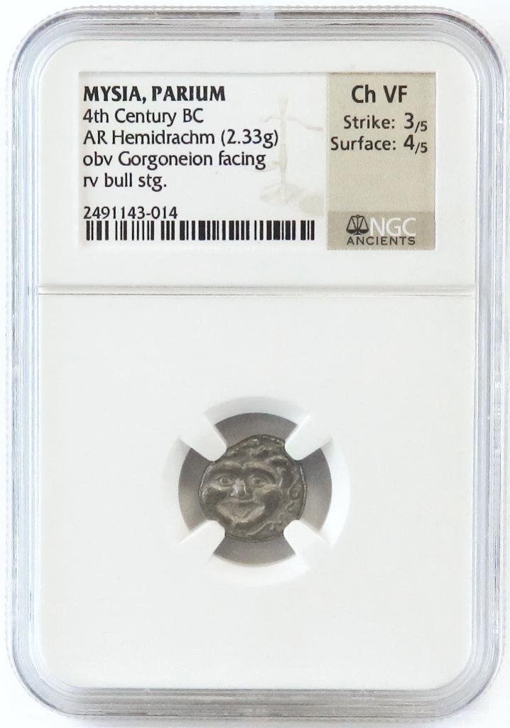 Ancient: Mysia, Parium 4th Century BC - AR Hemidrachm. NGC Certified CHVF.