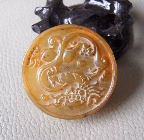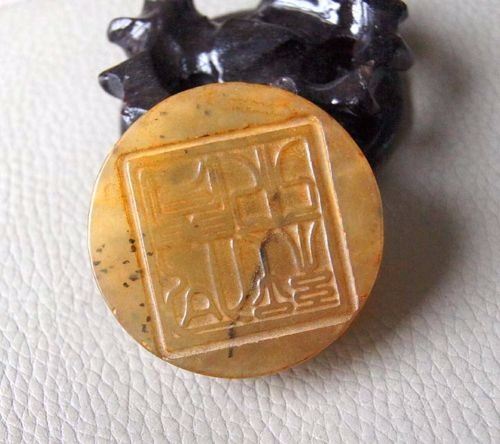 Natural yellow jade carving The ancients used Grass dragon Chapter printed..........Size:55 x 55 x 16 mm......