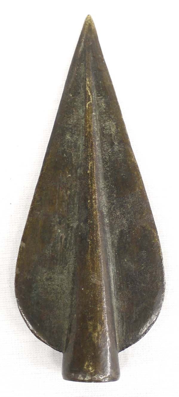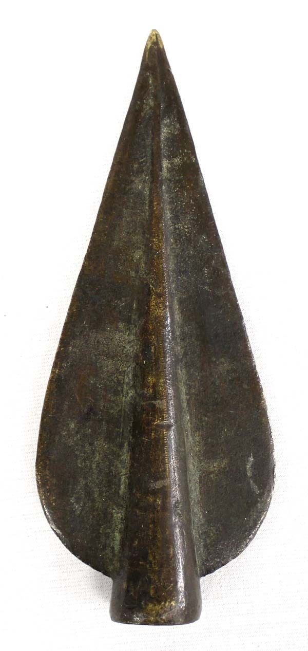 Ancient Persian Cast Bronze Spearpoint Replica, measures 3'' x 7'', Achaemenid, c. 6th-4th century BC., short socket