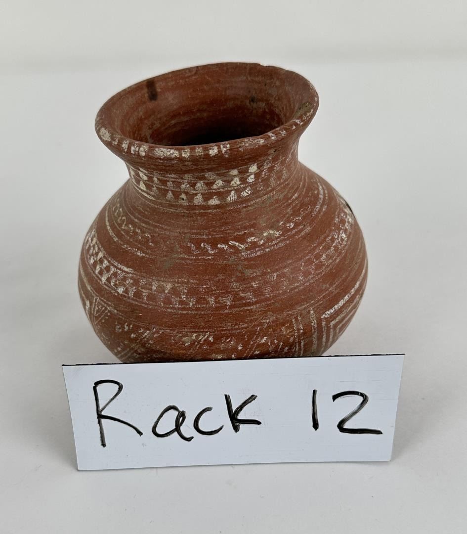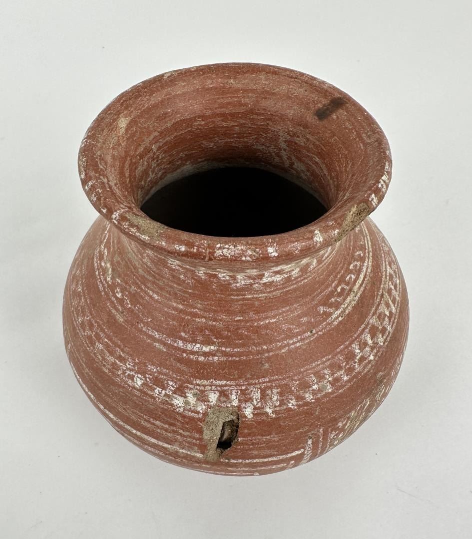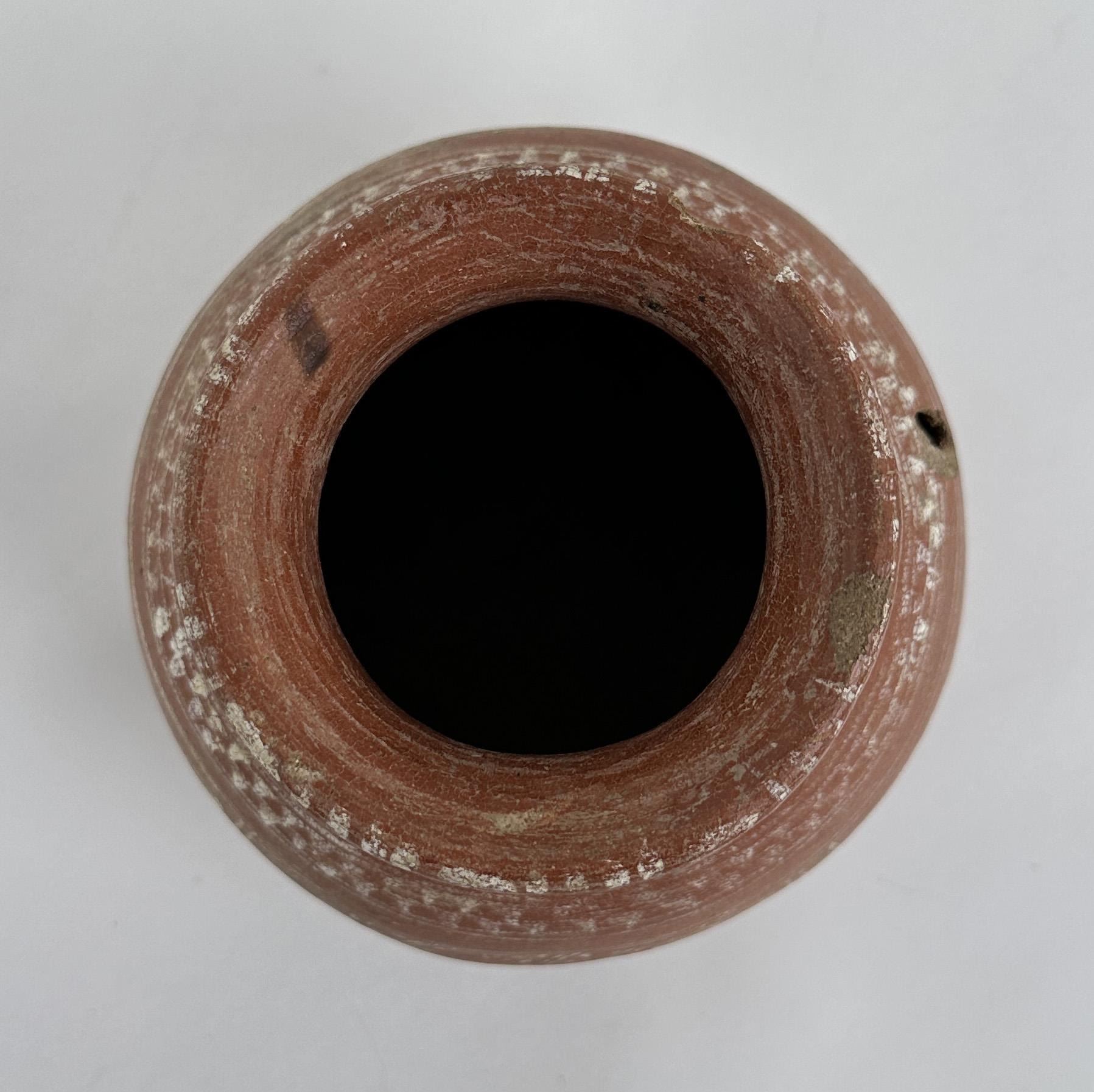 5 1/4" diameter. 5 1/4" tall. Some damage- see photos