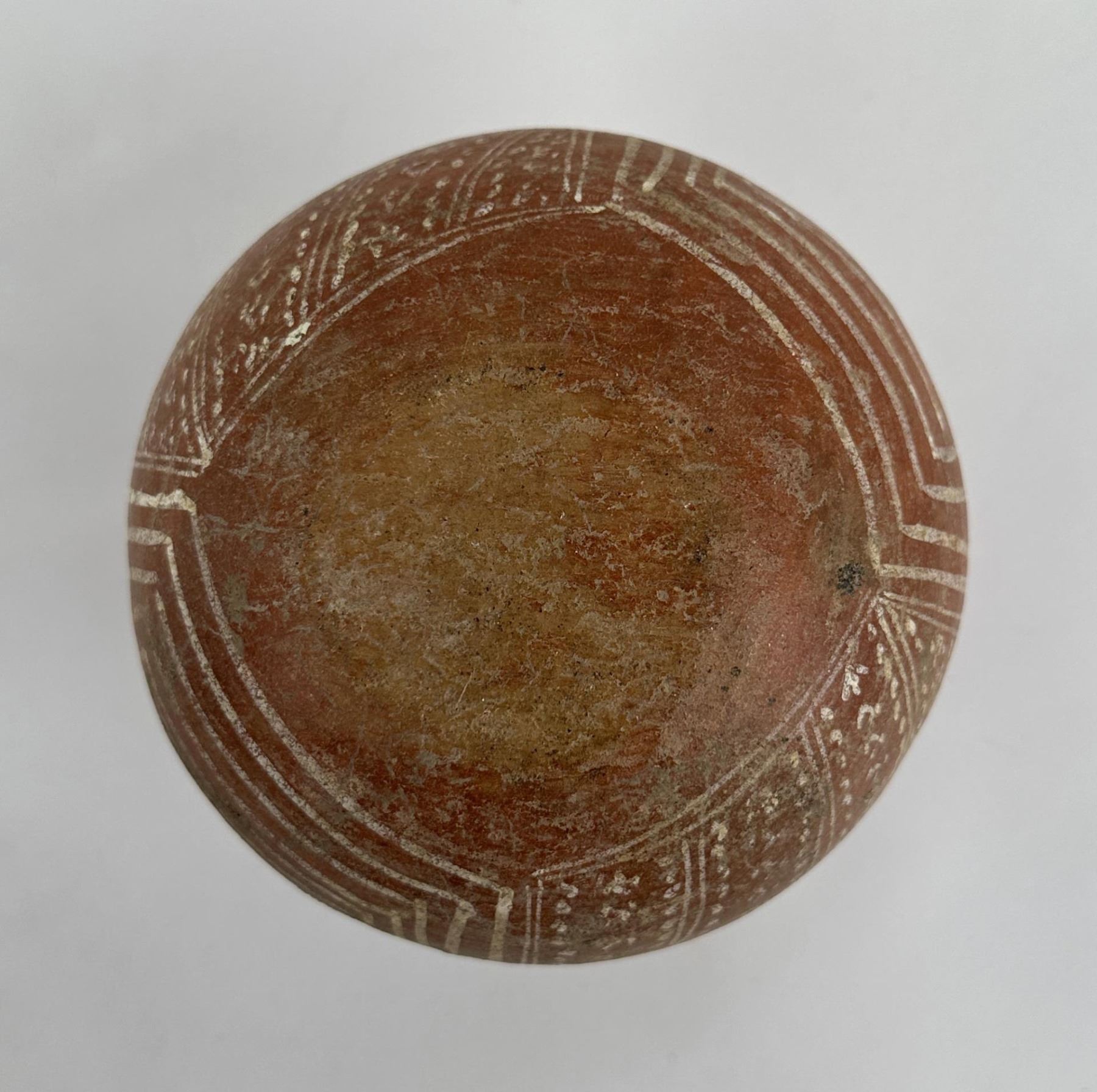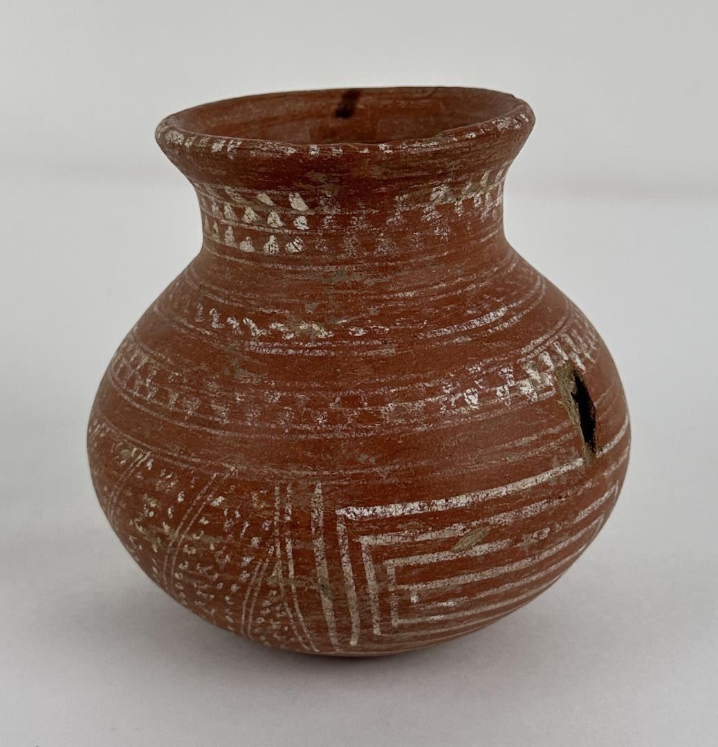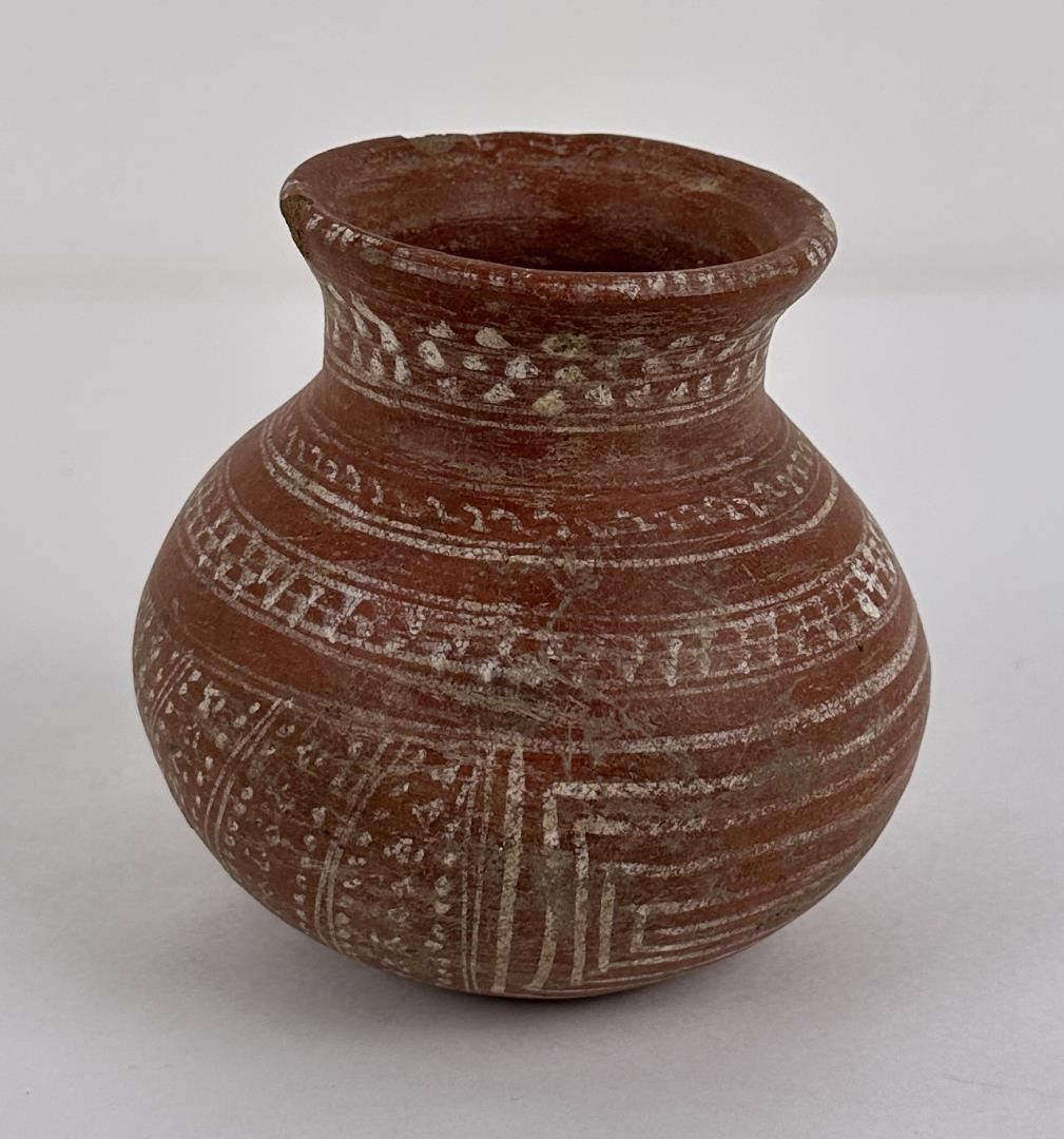 5 1/4" diameter. 5 1/4" tall. Some damage- see photos